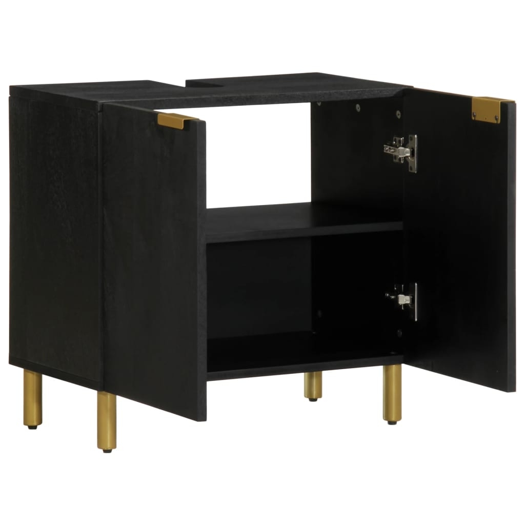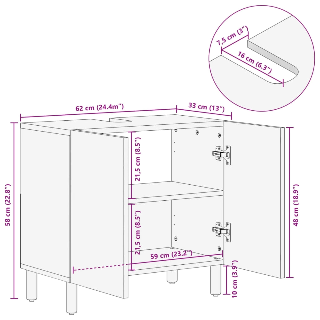 Dieser Waschbeckenunterschrank ist eine hervorragende Bereicherung für dein Badezimmer und verleiht ihm eine aufgeräumte und markante Optik! Langlebiges Material: Holzwerkstoff ist ein Material außergewöhnlicher Qualität mit glatter Oberfläche. Er zeichnet sich durch Festigkeit, Stabilität und Feuchtigkeitsbeständigkeit aus.Reichlich Stauraum: Der Waschbeckenschrank bietet reichlich Platz, um wichtigste Toilettenartikel und Badutensilien wie Seife, Shampoo, Zahnpasta usw. zu verstauen.Platzsparendes Design: Die Oberplatte des Badschranks bietet den idealen Platz für das Waschbecken. So kannst du auch den freien Platz unter dem Waschbecken optimal ausnutzen.Eisen-Beine: Die Beine aus Eisen verleihen dem Unterschrank eine industrielle Note und sorgen gleichzeitig für die Stabilität des Waschtisches. Achtung:Um ein Umkippen zu vermeiden, sollte dieses Produkt mit der mitgelieferten Wandhalterung gesichert werden.