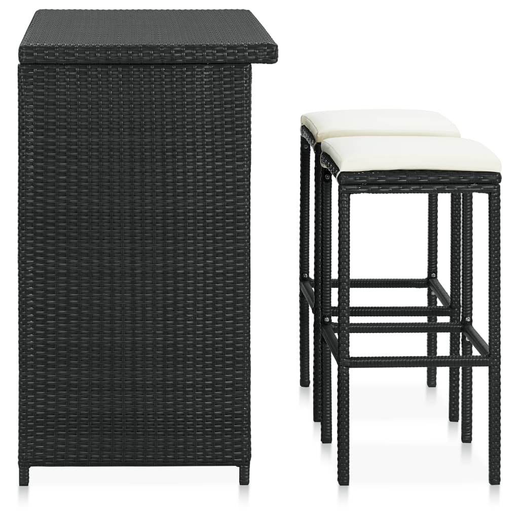 Unterhalten Sie sich mit Ihren Freunden oder genießen Sie einen Drink, während Sie sich an diesem stilvollen Bar-Set entspannen! Das Bistroset verfügt über einen starken Stahlrahmen, der es stabil macht. Das PE-Rattan ist langlebig und wetterbeständig und somit für den täglichen Gebrauch geeignet. Dieses Bar-Set ist dank der Leichtbauweise leicht zu bewegen. Das Sitzkissen und die eingebaute Fußstütze bieten zusätzlichen Sitzkomfort für den Hocker. Der leicht zu reinigende Kissenbezug aus Polyester mit verdecktem Reißverschluss kann entfernt und gewaschen werden. Der Stehtisch verfügt außerdem über zwei Regale für ausreichend Stauraum, damit Ihre wichtigen Gegenstände organisiert und in Reichweite bleiben.