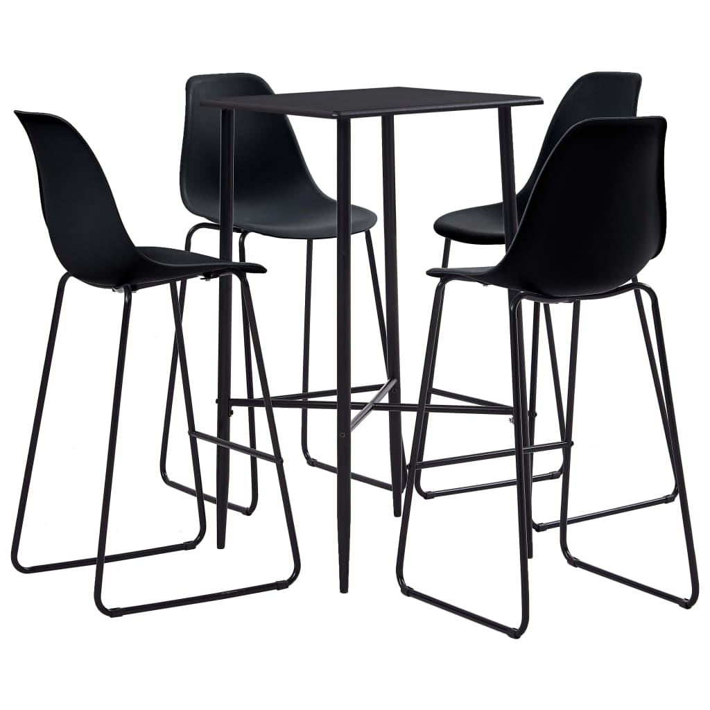 Dieses Bar-Set mit modernem und zeitgemäßem Design passt perfekt zu modernen Wohnungen, Gärten, Bars, Pubs oder Restaurants. Das saubere und zeitgemäße Design passt zu jeder Inneneinrichtung. Die Tischplatte besteht aus pflegeleichtem MDF. Das pulverbeschichtete Stahlgestell trägt zur Stabilität und Robustheit des Stehtisches bei. Die Barstühle haben einen ergonomisch geformten Sitz mit integrierter Rückenlehne in moderner, geschwungener Optik. Außerdem sind sie leicht zu montieren. Dieses Barset ist ideal, um ein Glas Wein an der Bartheke zu genießen, einen Happen am Küchentresen zu essen oder als zusätzliche Sitzgelegenheit, wenn Sie Gäste einladen. Die Lieferung umfasst einen Bartisch und 4 Barstühle.