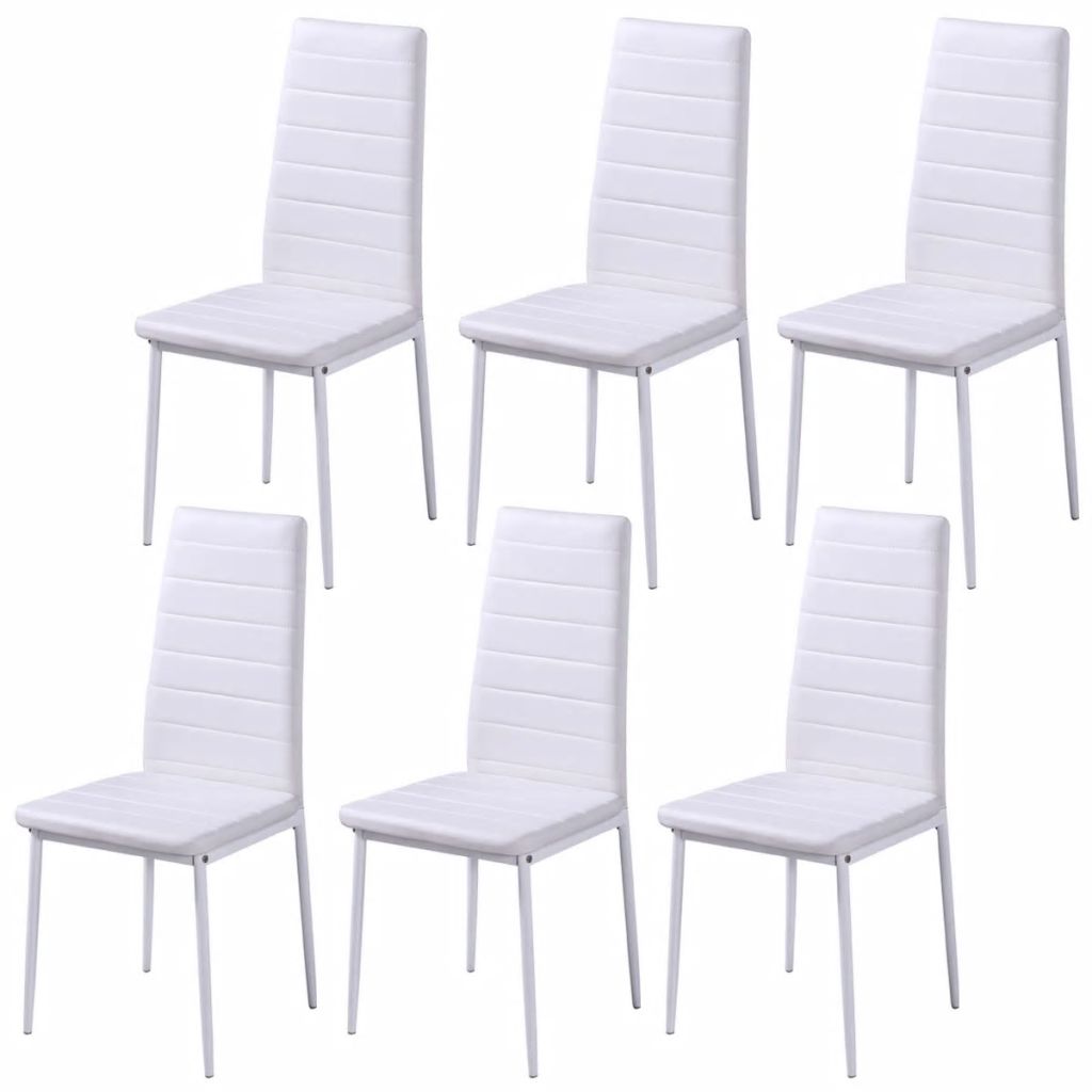 Diese Essgruppe, bestehend aus 7 Teilen, hat ein elegantes, modernes Design und ist ideal für alle, die ihrem Interieur einen Hauch von Stil verleihen möchten. Die Tischplatte besteht aus gehärtetem Glas, das leicht zu reinigen ist. Jeder Stuhl ist mit hochwertigem Kunstleder bezogen. Der weiche, gepolsterte Sitz ist sehr bequem. Die Lieferung umfasst 1 Tisch und 6 Stühle.