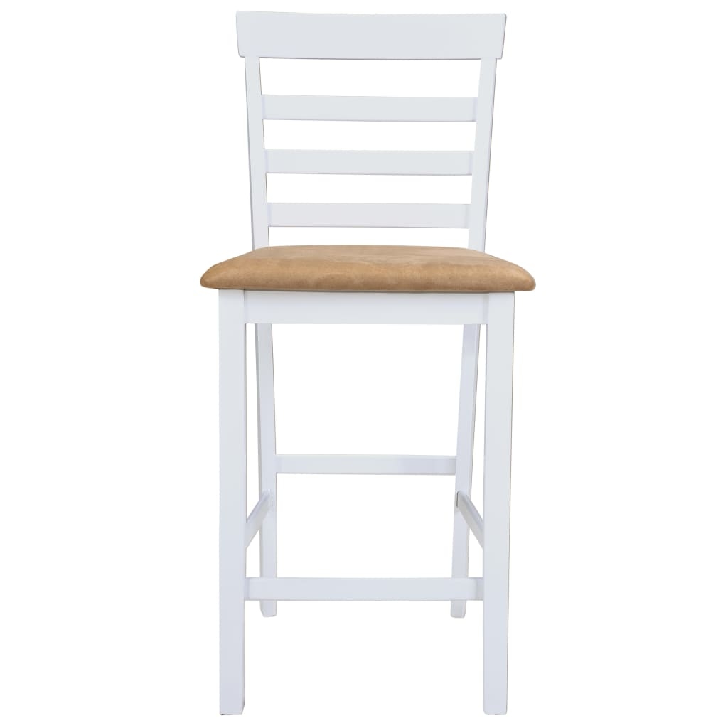 Dieses Set aus einem eleganten Stehtisch und stylischen Barhockern ist eine hervorragende Ergänzung für Ihre Küche und Ihr Esszimmer. Das elegante Design des Stehtisches und der Barhocker macht dieses Set zu einem zeitlosen Element für jedes Zimmer. Dank der Echtholzfurnier-Tischplatte und den Gummibaumholz-Beinen, ist der Tisch sowohl besonders hochwertig als auch pglegeleicht. Die Hocker haben einen stabilen und beständigen Gummibaumholz-Rahmen und dank der mit Schaumstoff gepolsterten Sitzflächen sind sie zudem sehr bequem. Das Möbel-Set verleiht jedem Wohnraum einen rustikalen Charme! Die Lieferung beinhaltet 1 weißen Stehtisch und 4 Barhocker.