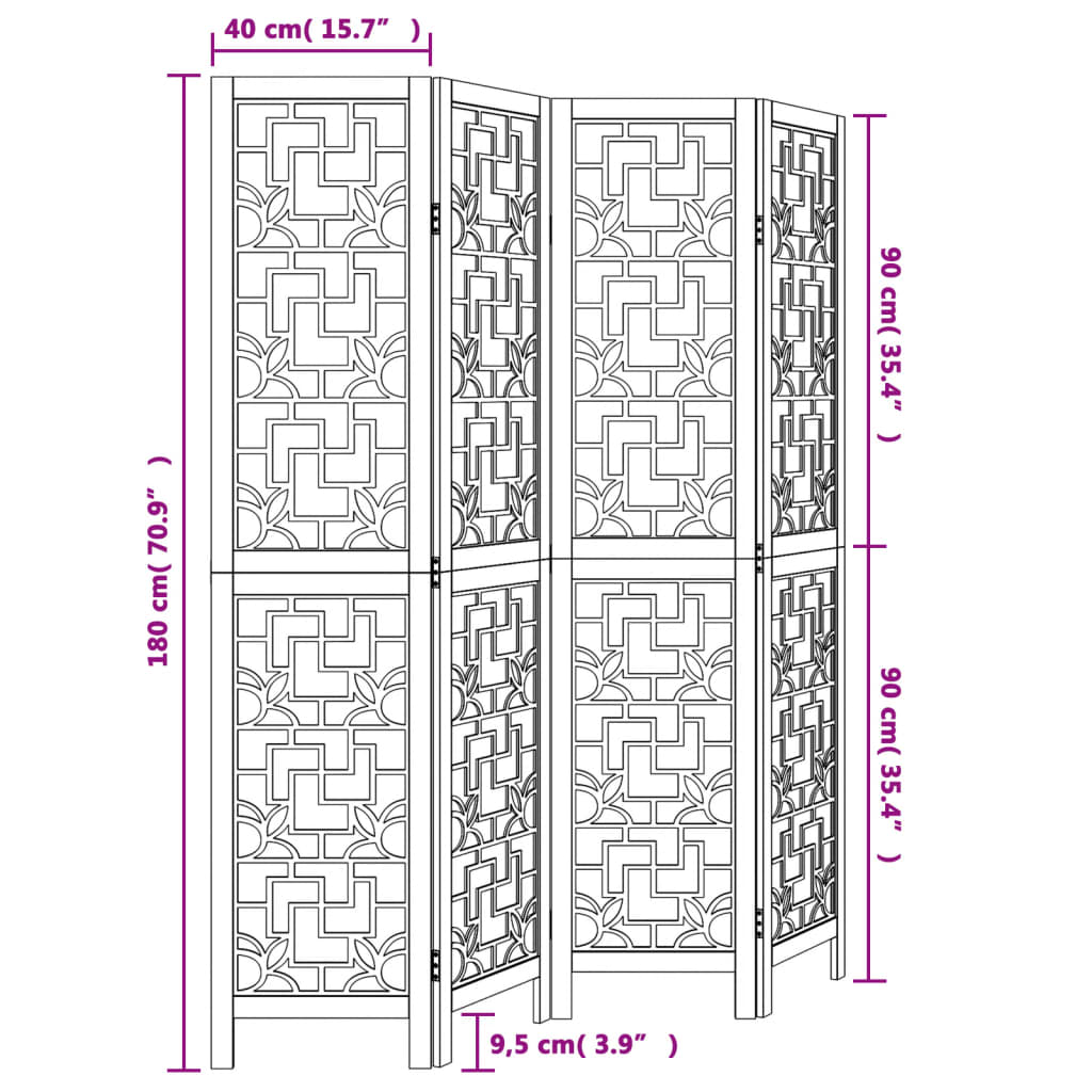 Verleihe deinem Wohnraum eine auffällige dekorative Note mit diesem bezaubernden Raumteiler. Langlebig und leicht zu reinigen: Der Sichtschutz ist aus Paulownia-Massivholz und Holzwerkstoff gefertigt, wodurch er pflegeleicht und strapazierfähig ist. Robuster Rahmen: Der Rahmen aus massivem Paulownia-Holz sorgt für Robustheit und Stabilität. Paulownia-Massivholz ist ein wunderschönes Naturmaterial. Paulowniaholz ist widerstandsfähig gegen Schädlingsbefall und Verrottung. Flexibel und einfach faltbar: Die Paravent-Teile sind jeweils durch 3 Metallscharniere miteinander verbunden. Die oberen und unteren Paneele dieser spanischen Wand sind durch verborgene 2-in-1-Scharniere verbunden. Der Raumtrenner kann also leicht bis zu einem gewissen Grad zusammengeklappt werden; dadurch spart er bei Nichtgebrauch Platz. Vielseitig einsetzbar: Die Trennwand eignet sich hervorragend zur Schaffung von Privatsphäre im Schlafzimmer, Wohnzimmer, Büro und anderen Räumen. Du kannst das Paravent auch vor ein Fenster stellen, um intensives Sonnenlicht abzuschirmen. Achtung:Nur für den Innenbereich!