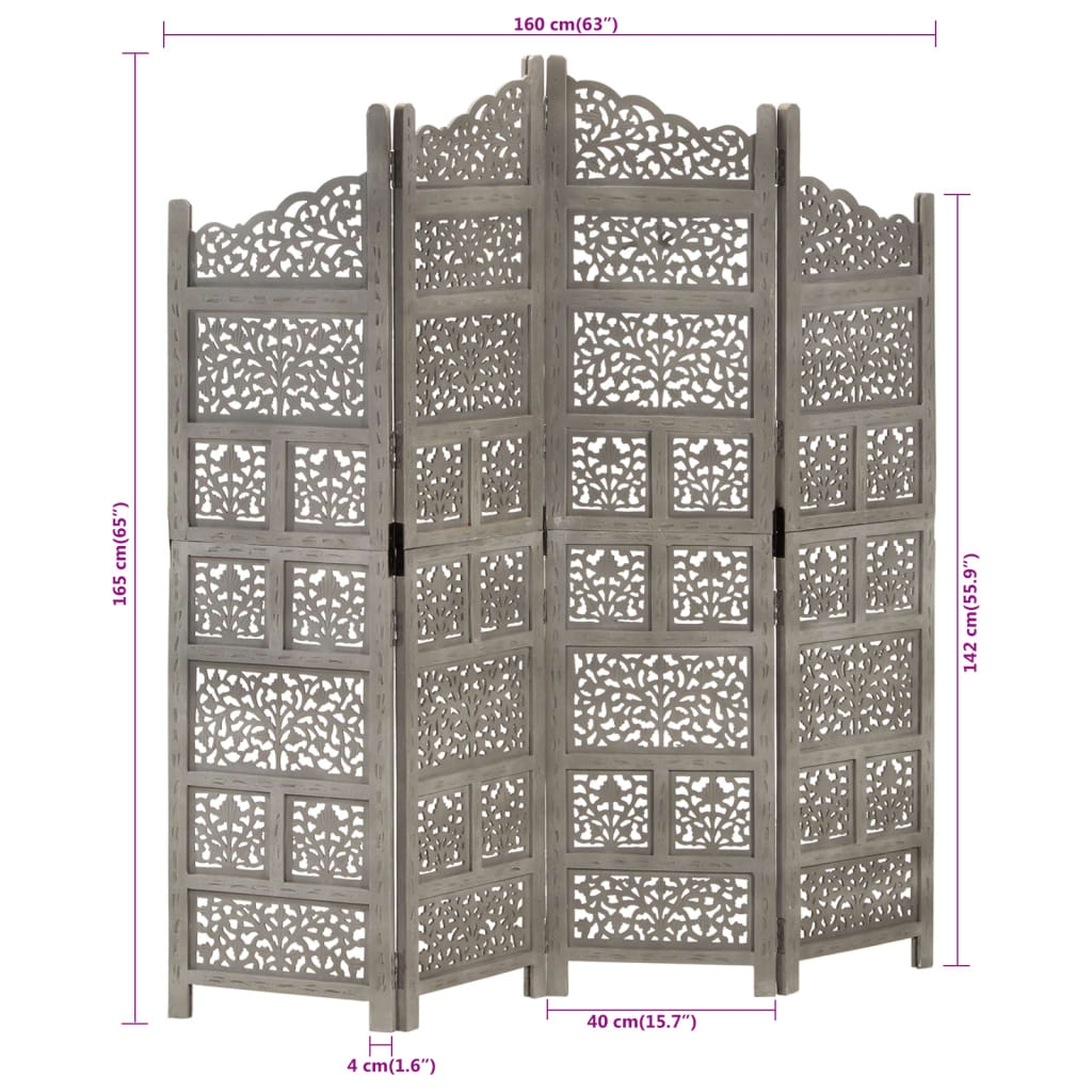 Verleihen Sie Ihrem Zuhause mit diesem schönen, handgeschnitzten Raumteiler einen Hauch von Eleganz! Es ist perfekt, um es im Schlafzimmer aufzustellen, um einen separaten, privaten Ankleidebereich oder einen Teil eines Raums zu schaffen. Zusätzlich ist der Raumteiler mit solider Konstruktion und mit schönen Mustern handgeschnitzt, was die Schönheit des Sichtschutzes noch mehr unterstreicht. Sie kann auch leicht zusammengeklappt werden, um Platz zu sparen, wenn sie nicht in Gebrauch ist. Der Paravent ist einfach zu montieren. Hinweis: Da der Artikel handgefertigt ist, können kleine Unterschiede in Muster und Farbe auftreten.