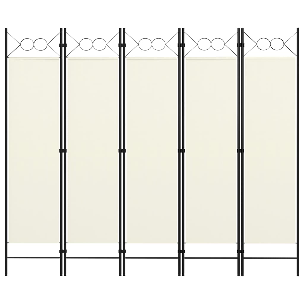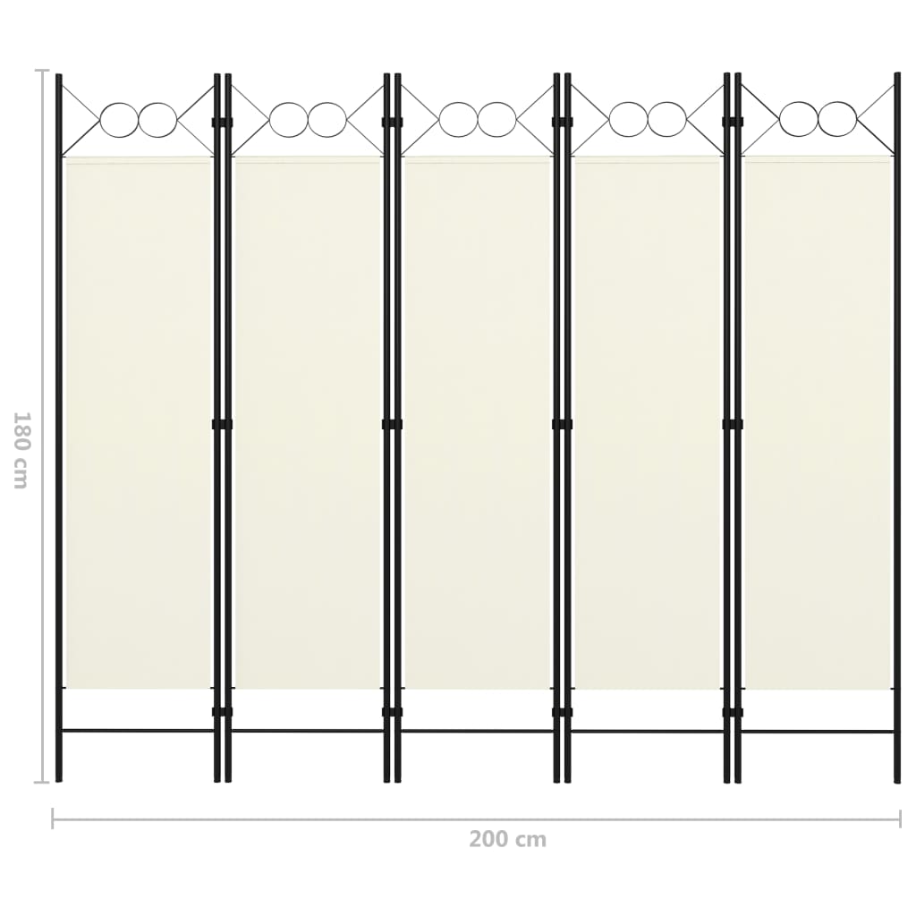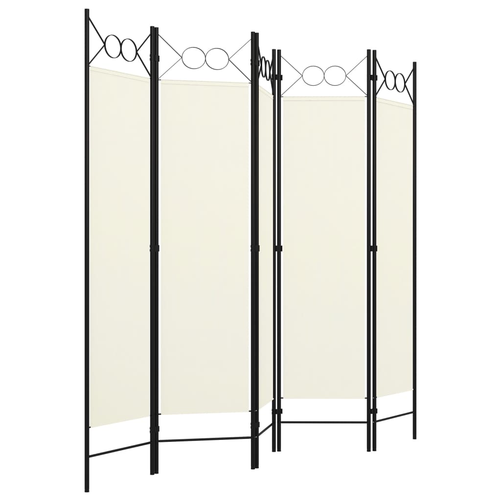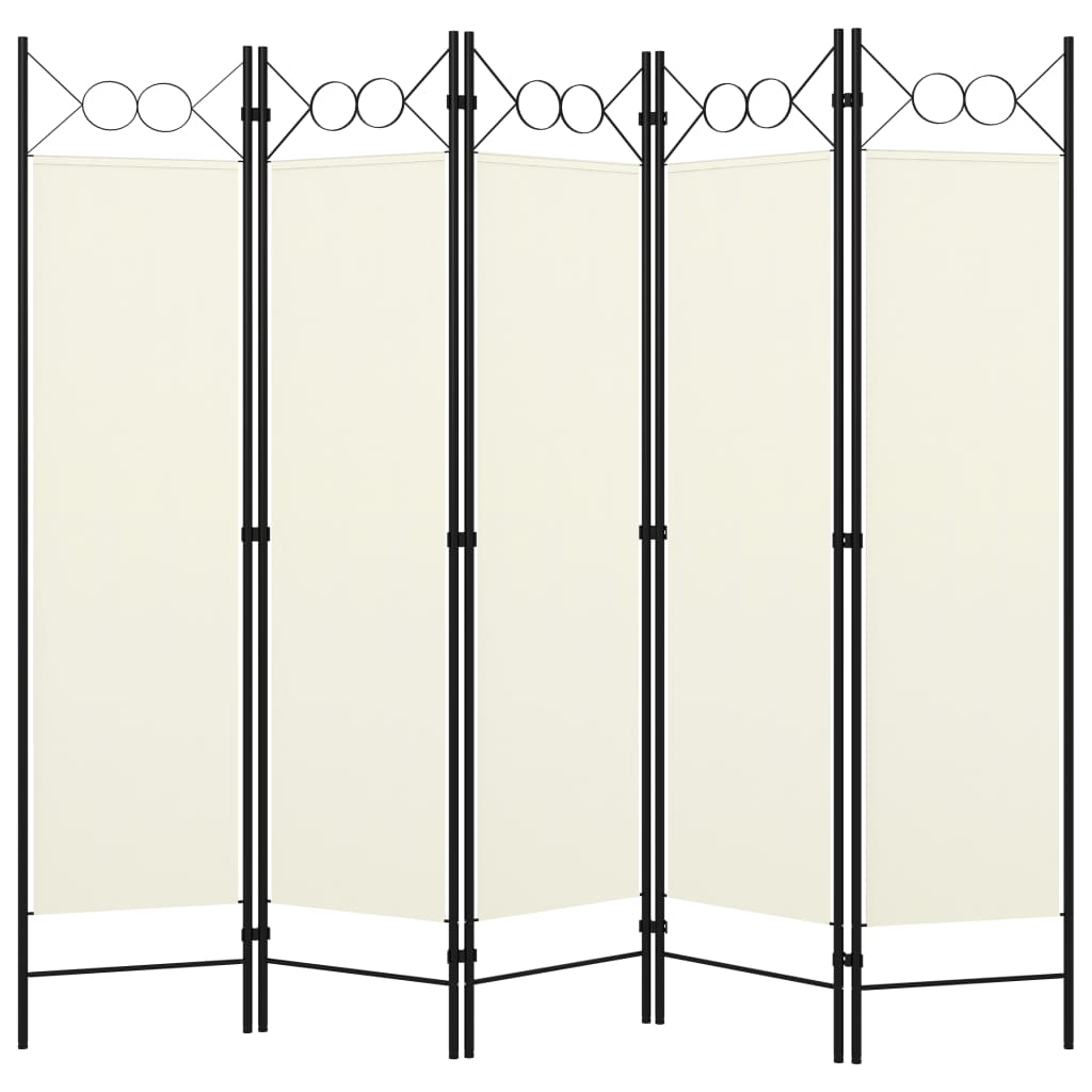 Der freistehende 5-teilige Raumteiler kann als Trennwand, Sichtschutz oder zur Dekoration verwendet werden. Er bietet ideale Privatsphäre im Schlafzimmer oder in einem anderen Raum deiner Wohnung. Die obere Verzierung mit kreisförmigem Muster verleiht zusätzliche Eleganz. Dieser Raumteiler besteht aus einem pulverbeschichteten Eisenrahmen und Stoffschirmen und kann bei Nichtgebrauch leicht zusammengeklappt werden. Hinweis: Der Stoff schirmt das Sonnenlicht nicht vollständig ab.