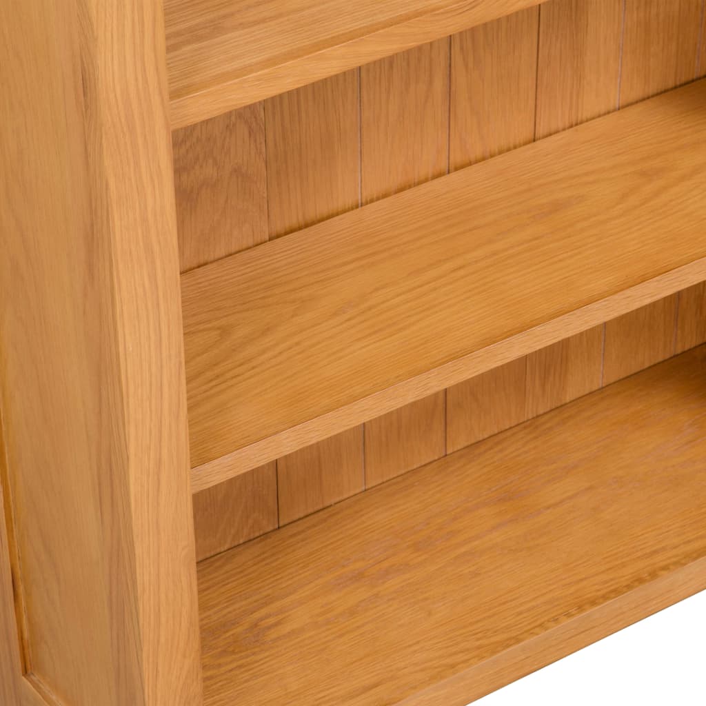 Dieses hochwertige Bücherregal aus Holz versprüht rustikalen Charme, der es zu einer zeitlosen Ergänzung in Ihrem Arbeitszimmer oder Wohnzimmer macht. Dieses elegante Bücherregal ist aus hochwertigem Eichenholz gefertigt, wodurch es robust und langlebig ist. Das stabile Holzregal erfordert wenig Pflege und die optisch ansprechende Holzmaserung verleiht ihm eine rustikale Note. Mit 3 Ablagen versehen, bietet das Bücherregal reichlich Platz, um Büchersammlungen, Zeitschriften und Unterlagen ganz ordentlich aufzubewahren. Mit seinem schlichten und dennoch zeitlosen Design lässt sich dieses Bücherregal auch verwenden, um Dekoartikel, Bilderrahmen usw. zur Schau zu stellen. Der Zusammenbau ist kinderleicht.