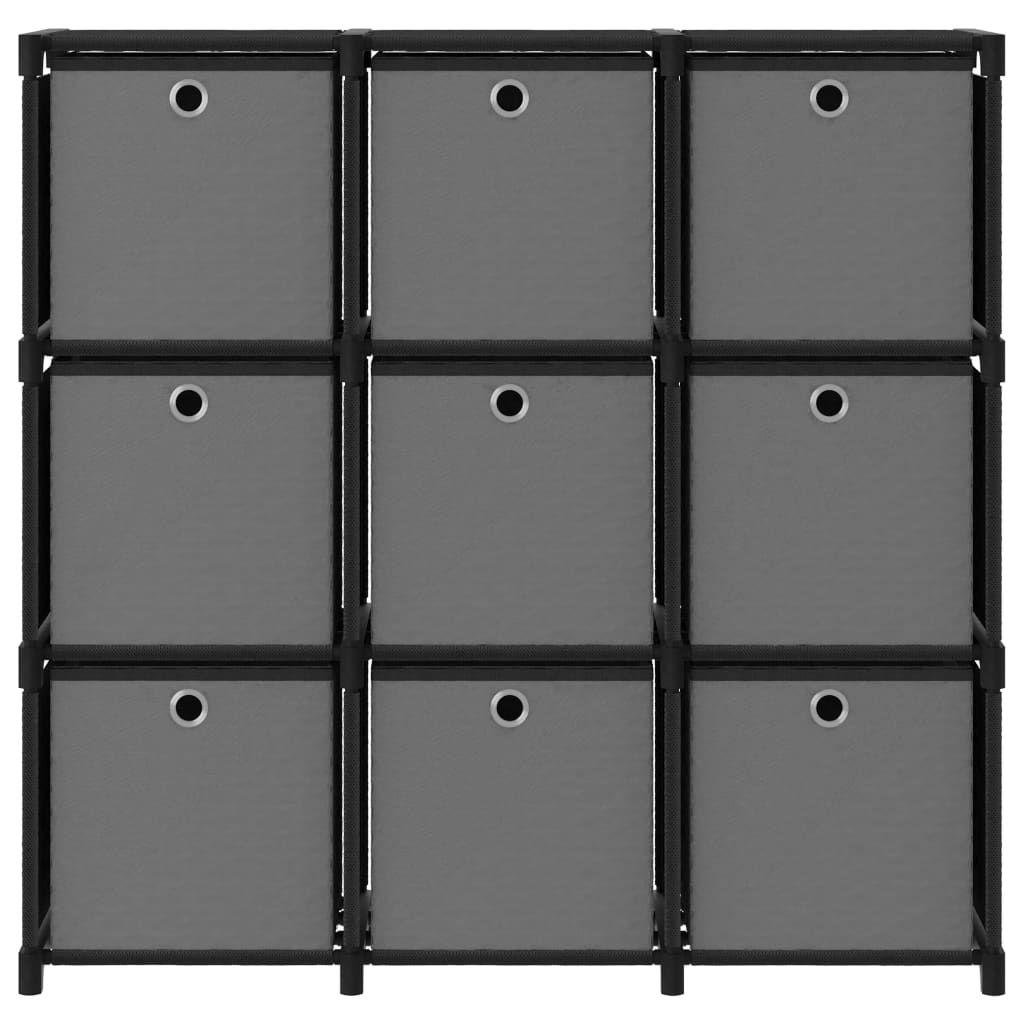 Das Würfel-Regal mit 9 Boxen verleiht deiner Inneneinrichtung einen modernen Look. Das Regal besteht aus Stoff und einem Stahlrahmen und ist dadurch robust und stabil. Dieses Standregal verfügt über 9 offene Fächer, die jeweils mit einer Stoffbox ausgestattet sind. Dadurch bietet dieses Würfelregal über ausreichend Stauraum für deine Sachen und sorgt so für Ordnung in deinem Zuhause. Wenn die Stoffboxen entfernt werden, ist das Regal der perfekte Ort zum Präsentieren von Büchern, Sammlerstücken, Fotos, Auszeichnungen, Topfpflanzen usw. Dank seiner Leichtbauweise lässt sich dieses Regal auch leicht umstellen.