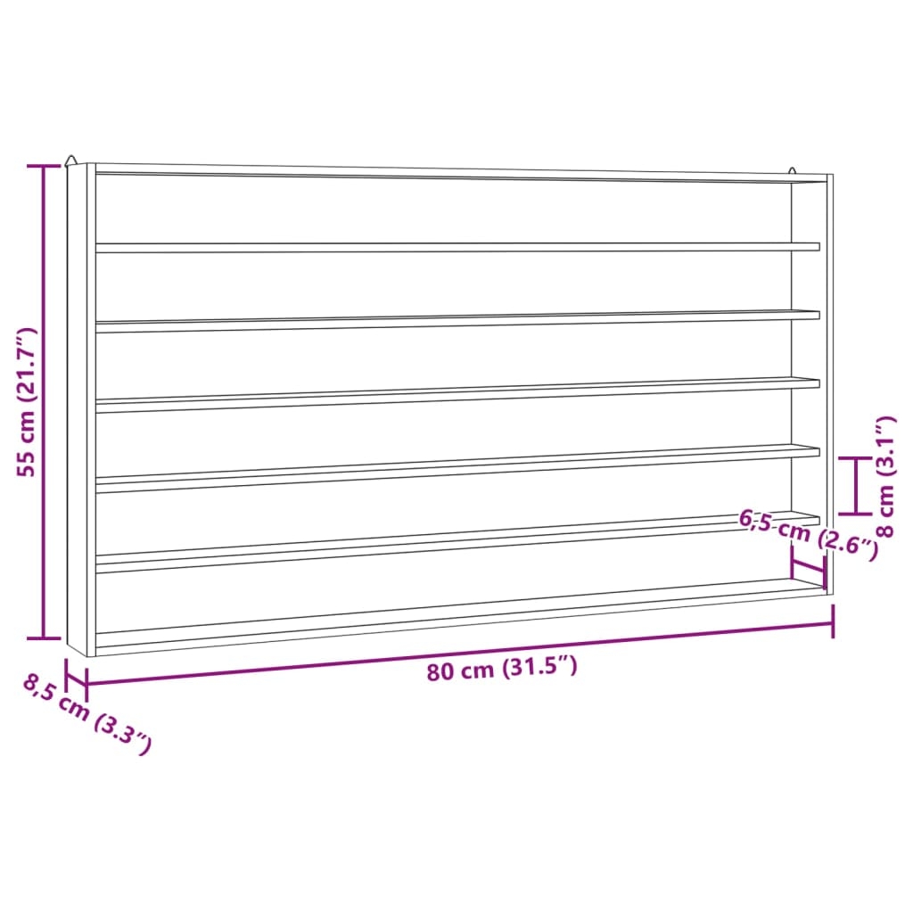 - Abmessungen Fach (jeweils): 78 x 6,5 x 8 cm (B x T x H)