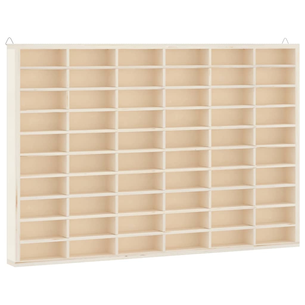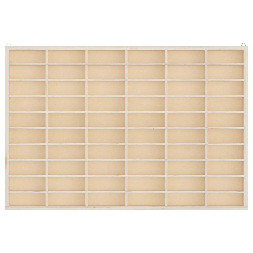 Werten Sie Ihren Raum mit dieser schlanken Sammlervitrine aus Holz auf, die stilvolles Design und Organisation für eine aufgeräumte Umgebung kombiniert. Langlebiges Material: Der Wandschrank besteht aus Sperrholz und ist daher auf eine lange Lebensdauer ausgelegt.Wandmontage: Die Wandvitrine verfügt über zwei dreieckige Haken und lässt sich daher ohne Bohren leicht an der Wand befestigen, ohne wertvolle Bodenfläche dabei in Anspruch zu nehmen.Reichlich Stauraum: Diese Wandvitrine verfügt über 60 Fächer, die reichlich Platz bieten, um verschiedene Kleinigkeiten übersichtlich und griffbereit zu verstauen.Erhöhte Sicherheit: Mit Eckschutz aus Hartpapier versehen, weist das Möbelstück keine scharfen Kanten auf, um Kindern und Haustieren eine sicherere Umgebung durch Verringerung des Unfallrisikos zu bieten.Breite Anwendungen: Dieser Wandschrank zeichnet sich durch ein zeitloses und schlichtes Design aus, das zu einer Vielzahl von Einrichtungsstilen passt. Er findet Platz im Wohnzimmer, Esszimmer oder Schlafzimmer.