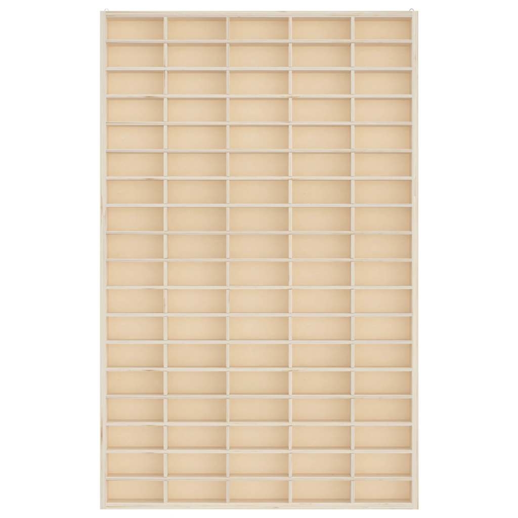 Werten Sie Ihren Raum mit dieser schlanken Sammlervitrine aus Holz auf, die stilvolles Design und Organisation für eine aufgeräumte Umgebung kombiniert. Langlebiges Material: Der Wandschrank besteht aus Sperrholz und ist daher auf eine lange Lebensdauer ausgelegt.Wandmontage: Die Wandvitrine verfügt über zwei dreieckige Haken und lässt sich daher ohne Bohren leicht an der Wand befestigen, ohne wertvolle Bodenfläche dabei in Anspruch zu nehmen.Reichlich Stauraum: Diese Wandvitrine verfügt über 90 Fächer, die reichlich Platz bieten, um verschiedene Kleinigkeiten übersichtlich und griffbereit zu verstauen.Erhöhte Sicherheit: Mit Eckschutz aus Hartpapier versehen, weist das Möbelstück keine scharfen Kanten auf, um Kindern und Haustieren eine sicherere Umgebung durch Verringerung des Unfallrisikos zu bieten.Breite Anwendungen: Dieser Wandschrank zeichnet sich durch ein zeitloses und schlichtes Design aus, das zu einer Vielzahl von Einrichtungsstilen passt. Er findet Platz im Wohnzimmer, Esszimmer oder Schlafzimmer.