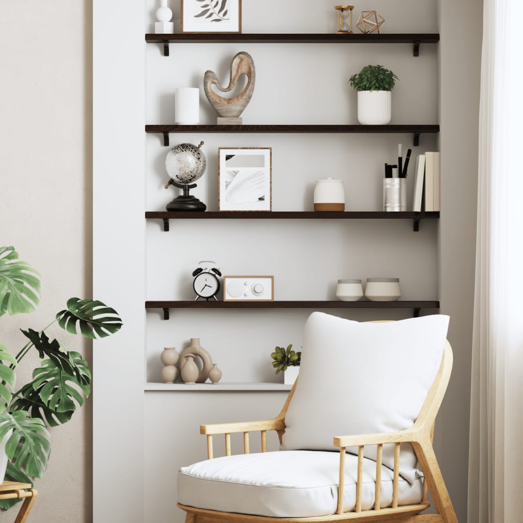Brauchst du mehr Stauraum, hast aber keinen Platz mehr am Boden? Dieses Wandregal im rustikalen Stil bietet die perfekte Lösung. Stabile Konstruktion: Das Wandregal besteht aus massivem Eichenholz, einem wunderschönen Naturmaterial. Eichenholz weist eine mittelbraune Farbe und eine dichte Maserung auf, was zu seiner einzigartigen Optik beiträgt.Vielseitig einsetzbar: Dieses Wandboard lässt sich nicht nur als Wandregal verwenden, sondern auch mit verschiedenen Gestellen kombinieren, um als Badezimmerablage, Schrankablage, Schreibtischablage, Tischablage usw. zu dienen.Behandelte Oberfläche: Das Holzregal ist mit einer dunklen Lackierung versehen, sodass es sofort einsatzbereit ist, da eine zusätzliche Behandlung nicht erforderlich ist.Handgefertigt mit Naturkante: Dieses Regal ist handgefertigt und besitzt eine Naturkante. Dabei sind Aststellen, Risse, leicht geschwungene Formen und verschiedene Farbtöne Teil des Eichenholzes und machen jedes Regal zu einem Unikat. Die Lieferung erfolgt nach dem Zufallsprinzip, wodurch die Exklusivität und Individualität deines Produkts gewährleistet wird. Gut zu wissen:Als Naturprodukt kann Holz Aststellen und Unebenheiten aufweisen, die wir mit schwarzer Füllung ausfüllen, um ein glattes Aussehen zu gewährleisten.