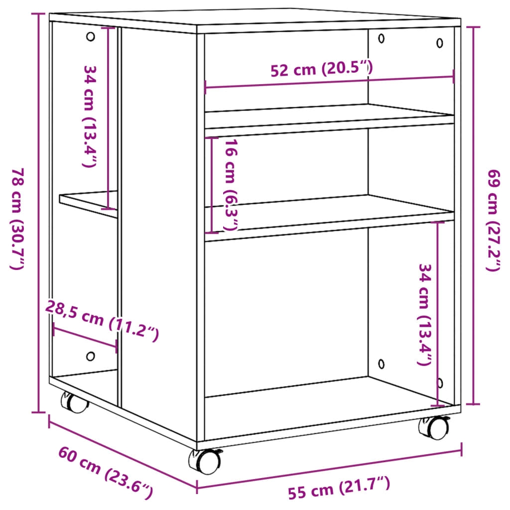- Abmessungen der Ablagen: 28,5 x 55 x 34 cm (B x T x H)