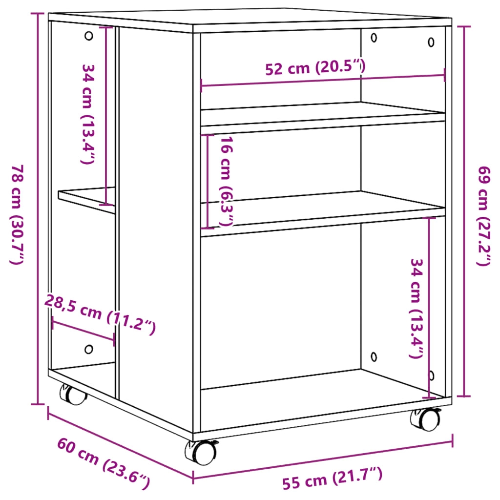 - Abmessungen der Ablagen: 28,5 x 55 x 34 cm (B x T x H)