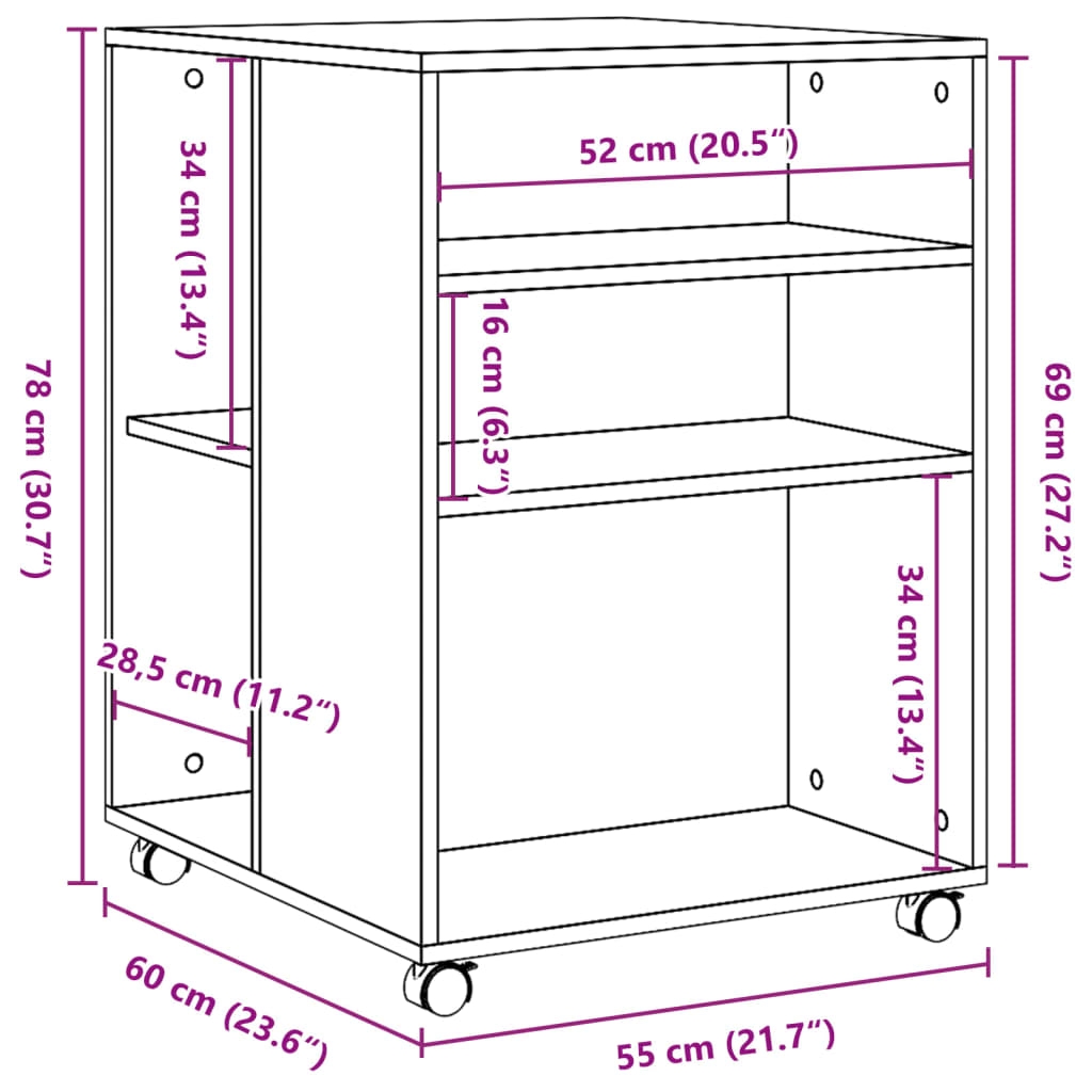Mit seinem trendigen und dennoch praktischen Design ist dieser Beistelltisch ein echter Hingucker in jedem Zimmer.Starkes und langlebiges Material: Holzwerkstoff ist ein langlebiges und robustes Material mit einer glatten Oberfläche, das gegen Feuchtigkeit, Verformung und Rissbildung beständig ist, wodurch es eine zuverlässigen Wahl für die Herstellung von Möbeln ist.Viel Stauraum: Der Beistelltisch verfügt über zwei Ablagen und bietet dadurch reichlich Platz, um wichtige Sachen ordentlich und griffbereit aufzubewahren.Einfaches Umstellen: Dank der vier Schwenkrollen lässt sich der Beistelltisch mühelos an jeden gewünschten Ort bringen. Dabei sind zwei Rollen feststellbar, um den Tisch bei Bedarf an Ort und Stelle zu halten und für zusätzliche Stabilität zu sorgen.Pflegeleicht: Dank seiner glatten Oberfläche lässt sich der Beistelltisch mit einem Tuch leicht reinigen und erfordert wenig Pflege.Vielseitig einsetzbar: Mit seinem zeitlosen Design lässt sich der Beistelltisch je nach Bedarf im Wohnzimmer, in der Küche oder im Schlafzimmer einsetzen.