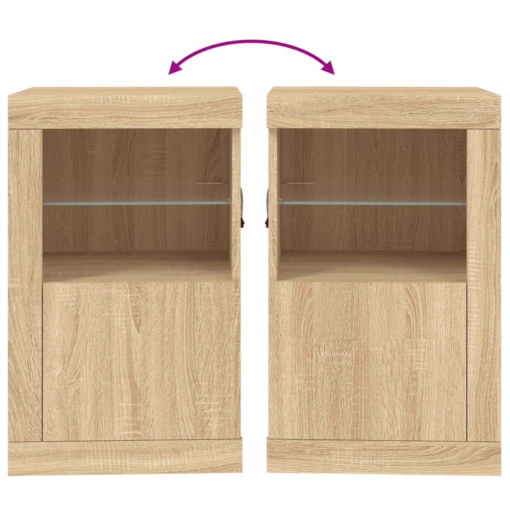Mit seinem trendigen und zugleich praktischen Design wird dieser Beistellschrank mit LED-Leuchten ein Blickfang in deinem Wohnzimmer sein. Langlebiges Material: Holzwerkstoff ist ein Material von außergewöhnlicher Qualität mit glatter Oberfläche, das sich durch Festigkeit, Stabilität und Feuchtigkeitsbeständigkeit auszeichnet.RGB-LED-Leuchten: Der Schrank ist mit lebendigen RGB-LED-Leuchten ausgestattet. Mit verschiedenen anpassbaren Menüs kannst du die Farbe der Lichter mühelos wechseln und sie sogar auf automatische Anpassung einstellen. Die LED-Beleuchtung unterstreicht den modernen Look des Schranks und trägt zu seinem trendigen Design bei.Viel Stauraum: Der Beistellschrank verfügt über eine Glasablage und ein verstecktes Staufach hinter den Türen und bietet so viel Platz, um deine Alltagssachen ordentlich und griffbereit aufzubewahren.Flexible Tür: Du kannst die Tür je nach Bedarf auf der linken oder rechten Seite montieren. Gut zu wissen:Das Produkt verfügt über einen USB-Anschluss, für den eine zertifizierte 5V-USB-Stromquelle erforderlich ist (nicht im Lieferumfang enthalten). Achtung:Um das Umkippen zu verhindern, muss dieses Produkt mit der mitgelieferten Wandhalterung gesichert werden.