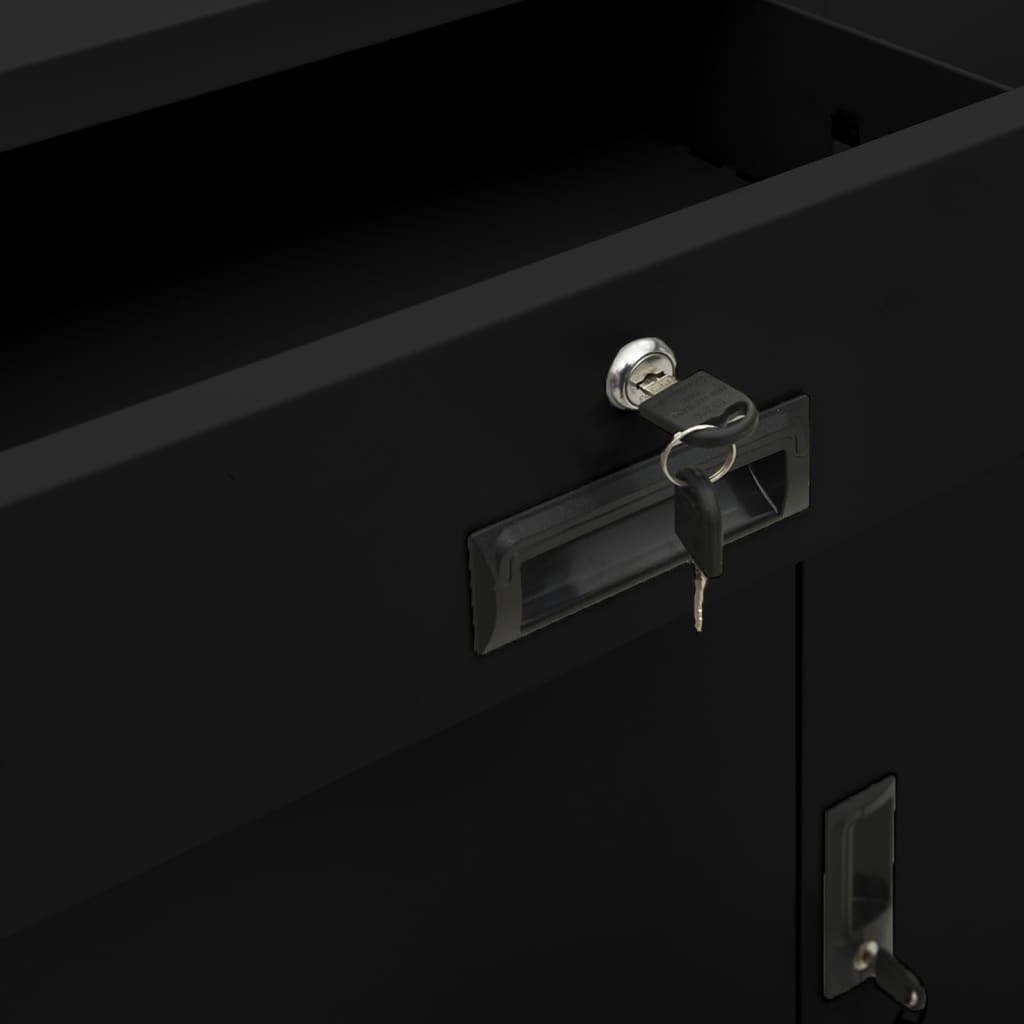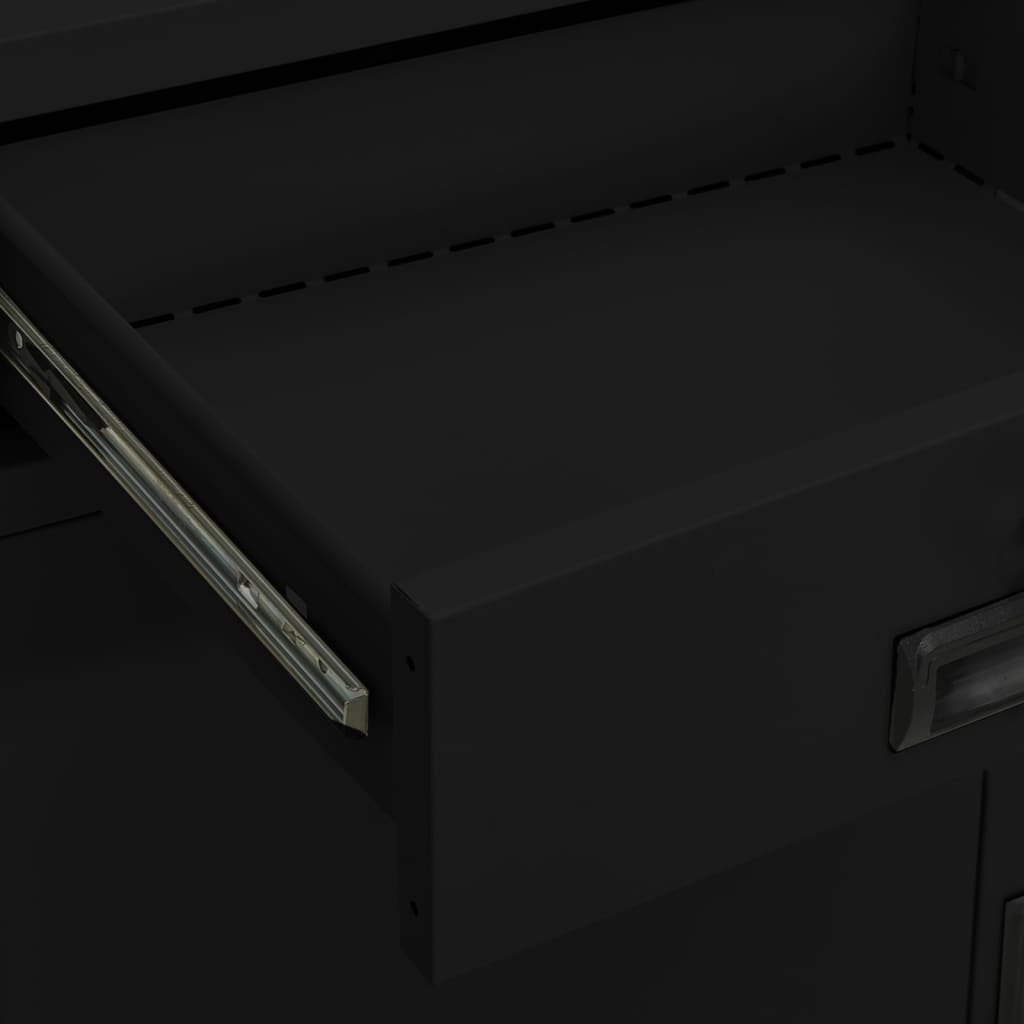 Dieser Büroschrank mit typischem Aktenschrank-Design eignet sich ideal zur Aktenaufbewahrung. Dieser Büroschrank ist aus Stahl gefertigt, wodurch er sowohl langlebig als auch leicht zu reinigen ist. Mit 2 verstellbaren Einlegeböden können Sie in diesem Aktenschrank Ihre Ordner ordentlich in verschiedene Kategorien sortieren und Akten sicher aufbewahren. Die Schubladen mit 3-teiligen kugelgelagerten Schubladenschienen sorgen für ein reibungsloses Öffnen und Schließen, auch bei erhöhter Belastung. Dank seines kultigen Designs passt dieser Schrank zu jeder Büroeinrichtung.