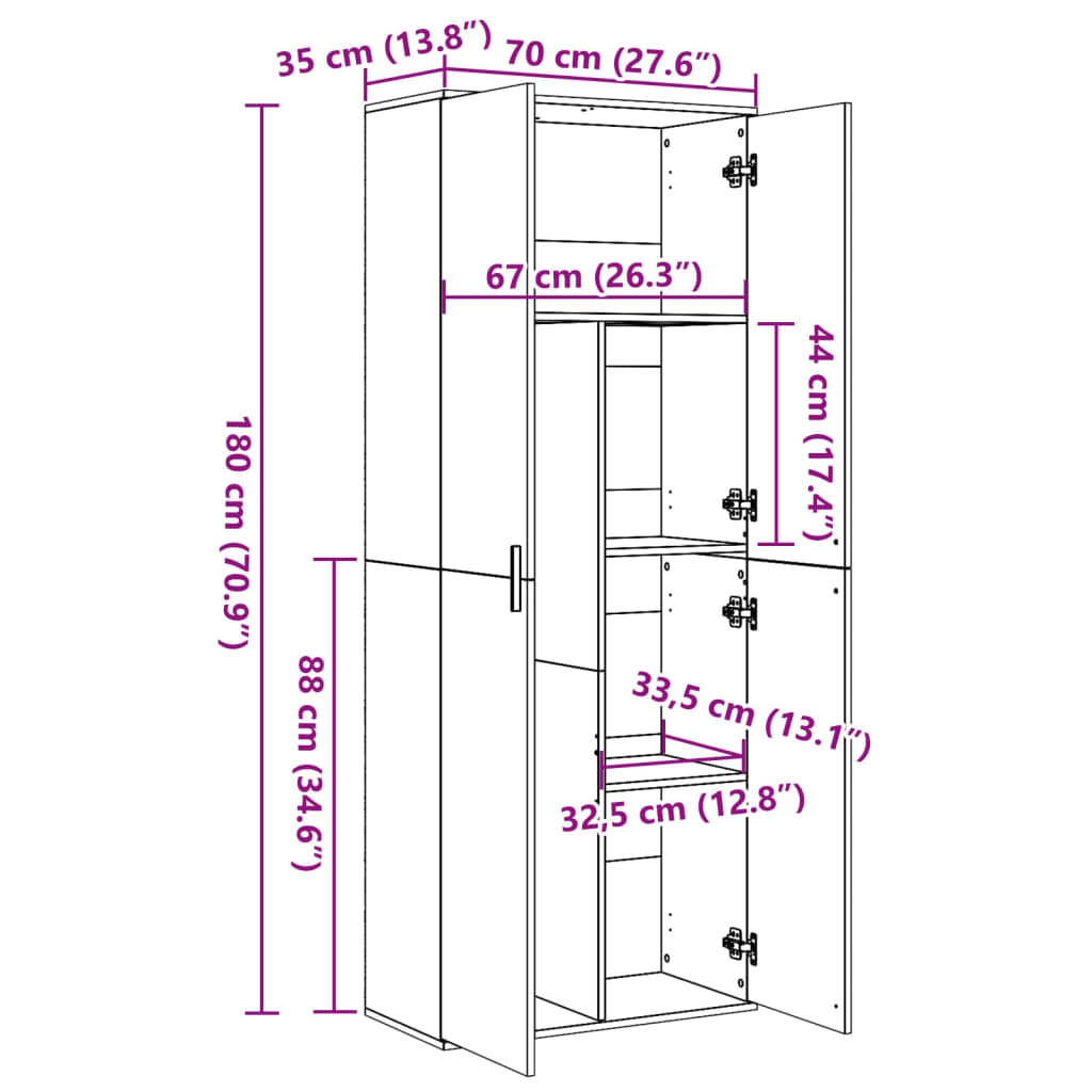 - Abmessungen: 70 x 35 x 180 cm (L x B x H)
