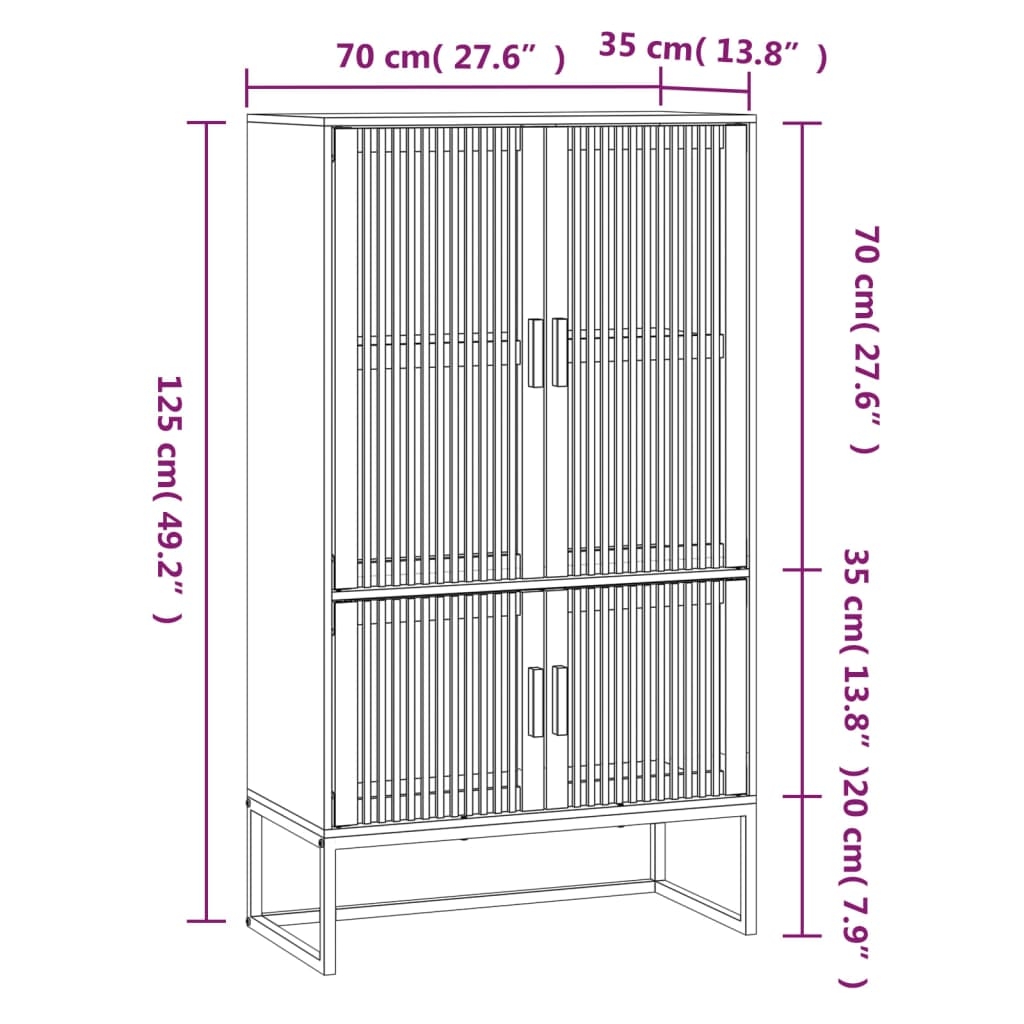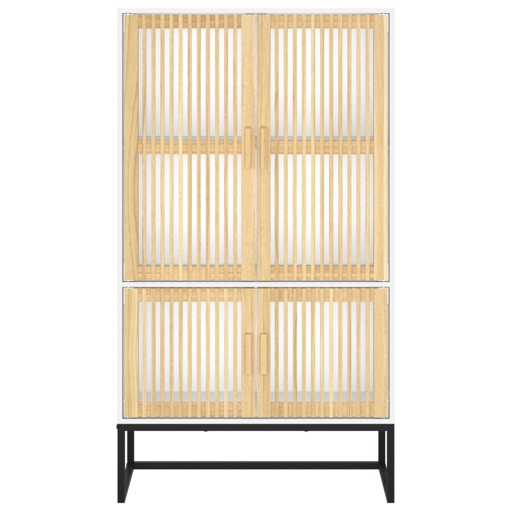 Auf der Suche nach einem stilvollen Highboard? Dieser Schrank verleiht deiner Einrichtung einen einzigartigen Charme! Langlebiges Material: Der Holzwerkstoff ist von außergewöhnlicher Qualität, hat eine glatte Oberfläche und zeichnet sich durch Festigkeit, Robustheit und Widerstandsfähigkeit gegen Feuchtigkeit aus. Die Türen aus massivem Kiefernholz verleihen dem Highboard ein natürliches und angenehmes Aussehen und eine lange Lebensdauer.Stabile Füße: Die Eisen-Füße des Sideboards sorgen für Standfestigkeit und Stabilität.Viel Stauraum: Der Lagerschrank bietet viel Platz, um verschiedene Alltagssachen gut organisiert und in Reichweite aufzubewahren.Zeitloses Design: Mit seinen sauberen, schlichten Linien und seinem minimalistischen Look verleiht diese schicke Anrichte deiner Inneneinrichtung eine zeitlose, skandinavische Note. Achtung:Um das Umkippen zu verhindern, muss dieses Produkt mit der mitgelieferten Wandhalterung gesichert werden. Hinweis:Jedes Produkt wird mit einer Montageanleitung in der Verpackung für einen einfachen Zusammenbau geliefert.