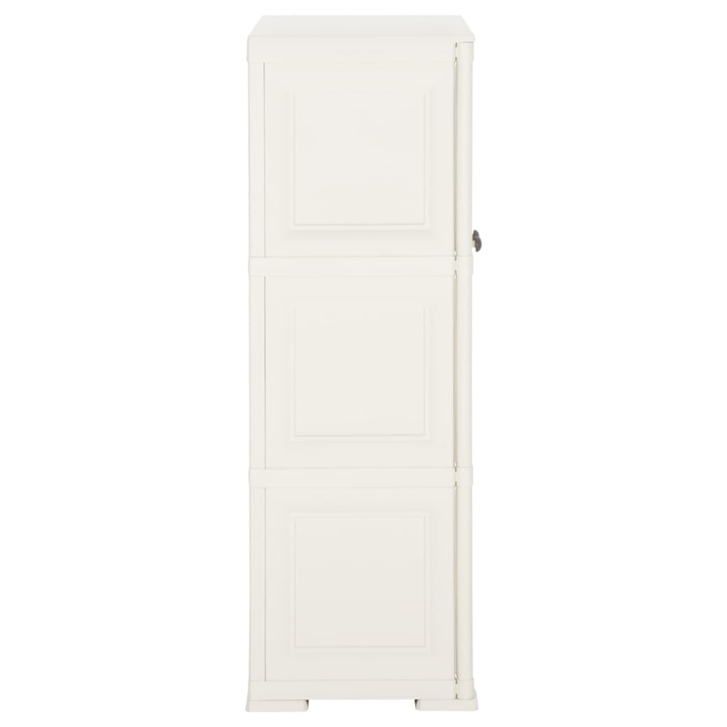 Mit diesem Schrank sorgen Sie für Ordnung in Ihrem Zuhause. Er ist eine ideale Wahl für den Einsatz zu Hause, im Büro und im Lagerraum. Dieser Aufbewahrungsschrank ist aus Kunststoff gefertigt und daher leicht zu reinigen. Der Schrank bietet reichlich Stauraum, um Ihre wichtigsten Gegenstände ordentlich und griffbereit aufzubewahren. Der Schrank weist ein kompaktes Design auf und nutzt daher begrenzten Platz optimal aus.