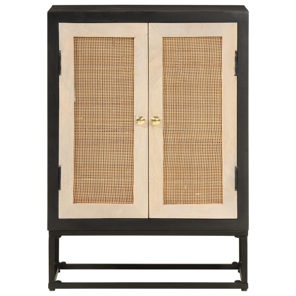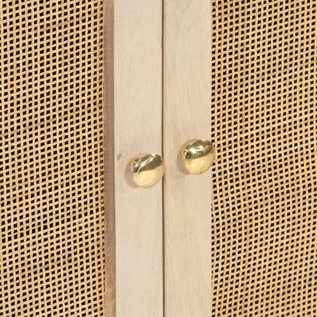 Dieses Sideboard aus Holz ist eine praktische und dekorative Ergänzung zu deiner Inneneinrichtung. Massives Mangoholz: Massives Mangoholz ist ein starkes, tropisches Hartholz, aus dem robuste Möbelstücke hergestellt werden. Die optisch ansprechende Holzmaserung macht jedes Möbelstück zu einem Unikat. Reichlich Stauraum: Der Beistellschrank bietet praktischen Stauraum, um verschiedene Sachen ordentlich und griffbereit aufzubewahren. Stabile Oberplatte: Die Oberplatte des Sideboards bietet den perfekten Platz, um Dekoartikel, Bilderrahmen und Topfpflanzen zur Schau zu stellen. Starke Beine: Die Eisenbeine tragen zur Robustheit und Stabilität der Nachtkommode bei. Achtung:Um ein Umkippen zu vermeiden, sollte dieses Produkt mit der mitgelieferten Wandhalterung gesichert werden.