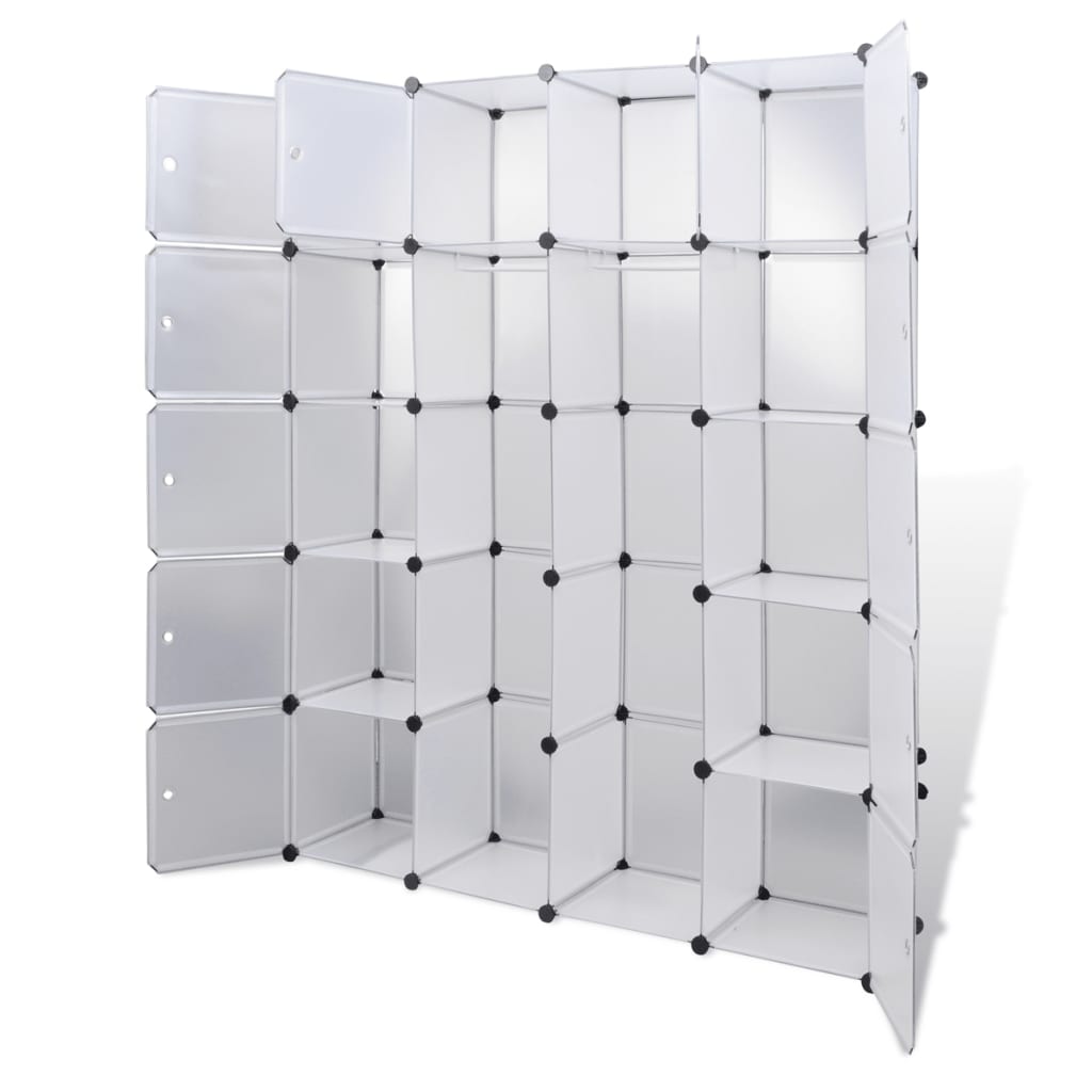 Dieser modulare Schrank passt sich leicht in die gewünschte Umgebung ein - sei es nun ins Kinderzimmer, Wohnbereich, in den Flur oder ins Schlafzimmer. Stylish und funktional. Der Schrank ist aus Kunststoffelementen und verchromtem Stahldraht gefertigt, wodurch er einfach gereinigt werden kann. Aufgrund der cleveren KOnstruktion kann der Schrank schnell und unkompliziert aufgebaut werden. Der modulare Aufbau ermöglicht unterschiedliche Kombinationen, um sich den räumlichen Gegebenheiten oder Ihren Vorstellungen anzupassen. Bitte vermeiden Sie, die Regale zu stark zu belasten, und beachten Sie, dass Kunststoff entflammbar ist.