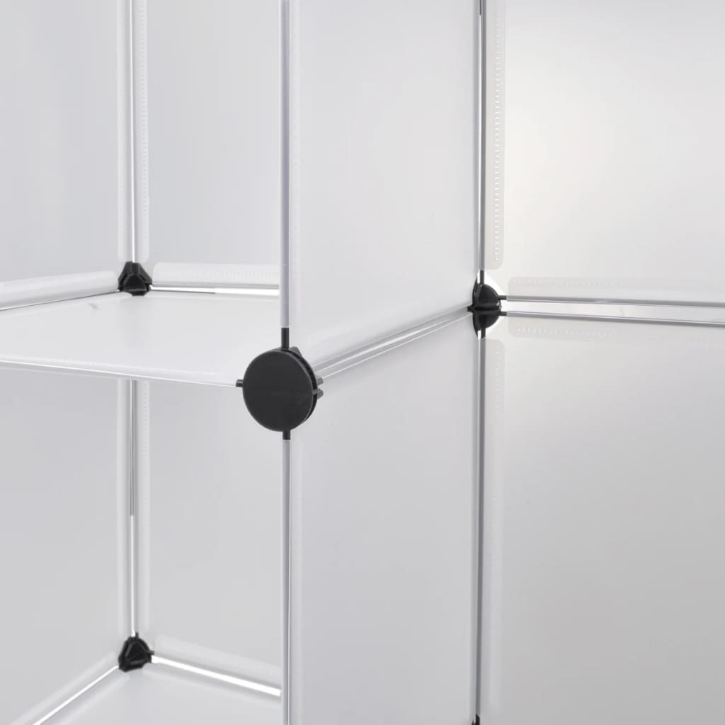 Dieser praktische, modulare Schrank ist nicht nur sehr stilvoll, sondern sorgt auch dafür, dass deine Kleidung und Schuhe ordentlich aufbewahrt werden. Der Fächerschrank wird eine tolle Ergänzung für das Kinderzimmer, Wohnzimmer oder Schlafzimmer sein. Der Kleiderschrank besteht aus Kunststoff-Elementen und verchromtem Stahldraht, wodurch er sich leicht reinigen lässt. Dank seines cleveren Designs lässt sich der Schrank schnell und einfach in verschiedenen Konfigurationen aufbauen, je nach Raum und Laune. Bitte vermeide eine zu starke Beanspruchung der Fächer und vergiss nicht, dass der Kunststoff brennbar ist.