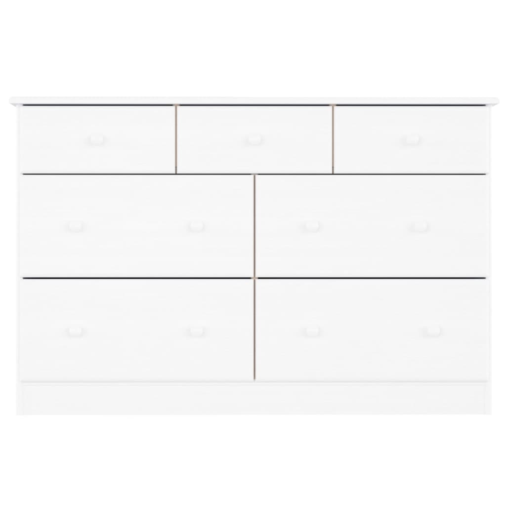 Mit ihrem zeitlosen Design ist diese Kommode aus Holz eine hervorragende Bereicherung für dein Zuhause. Kiefer-Massivholz: Massives Kiefernholz ist ein wunderschönes Naturmaterial. Kiefernholz hat eine gerade Maserung und die Aststellen verleihen dem Holz sein typisches, rustikales Aussehen. Aus Kiefern-Massivholz gefertigt, ist die Schubladenkommode langlebig und robust.Reichlich Stauraum: Der Beistellschrank verfügt über 7 Schubladen in verschiedenen Größen, die unterschiedlichen Aufbewahrungsbedürfnissen gerecht werden und reichlich Stauraum für deine Sachen bieten.Knäufe aus Holz: Das Sideboard ist mit Knäufen aus Holz ausgestattet, die das Öffnen und Schließen der Kommode erleichtern und gleichzeitig zu ihrer ansprechenden Optik beitragen.Pflegeleicht: Der Schubladenschrank lässt sich leicht mit einem feuchten Tuch reinigen und erfordert nur wenig Pflege. Achtung:Um ein Umkippen zu vermeiden, sollte dieses Produkt mit der mitgelieferten Wandhalterung gesichert werden.