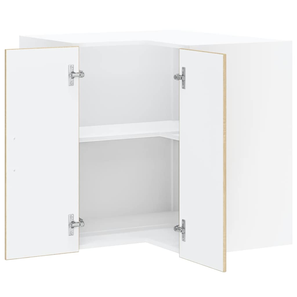 Dieser Eckhängeschrank optimiert den verfügbaren Platz in deiner Küche und stellt ein auffälliges Deko-Element in deinem Zuhause dar! Starkes und langlebiges Material: Holzwerkstoff ist ein langlebiges und robustes Material mit einer glatten Oberfläche, das gegen Feuchtigkeit, Verformung und Rissbildung beständig ist, wodurch es eine zuverlässigen Wahl für die Herstellung von Möbeln ist.Viel Stauraum: Der Eckhängeschrank bietet reichlich Stauraum für Schüssel, Teller, Töpfe und andere Küchengeräte.Wandmontage: Der Küchenschrank lässt sich an der Wand befestigen, um zusätzlichen Stauraum zu schaffen. Auf diese Weise kannst du deine Bodenfläche maximieren und für mehr Ordnung im Raum sorgen.Praktische Türen: Hinter den Türen kannst du Küchengeräte verstauen, und so einen sauberen und aufgeräumten Raum genießen.Pflegeleicht: Dank seiner glatten Oberfläche lässt sich dieser Schrank mit einem feuchten Tuch leicht reinigen und erfordert wenig Pflege. Achtung:Um ein Umkippen zu vermeiden, sollte dieses Produkt mit der mitgelieferten Wandhalterung gesichert werden. Gut zu wissen:Schrauben und Dübel für die Wandbefestigung sind nicht enthalten. Suchen und verwenden Sie die für Ihre Wände geeigneten Schrauben und Dübel. Wenn Sie unsicher sind, suchen Sie professionelle Hilfe. Lesen und befolgen Sie jeden Schritt der Anleitung sorgfältig.