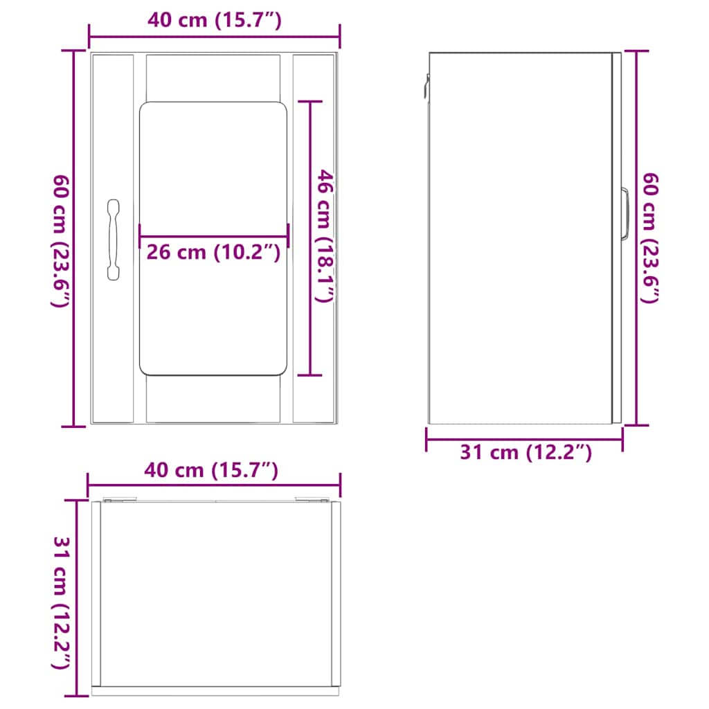 - Gesamtabmessungen: 40 x 31 x 60 cm (B x T x H)