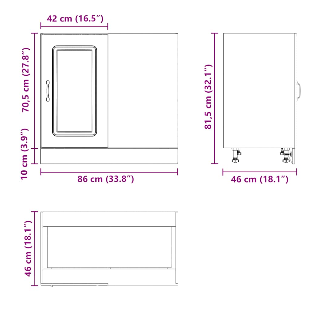 - Gesamtabmessungen: 86 x 46 x 81,5 cm (B x T x H)