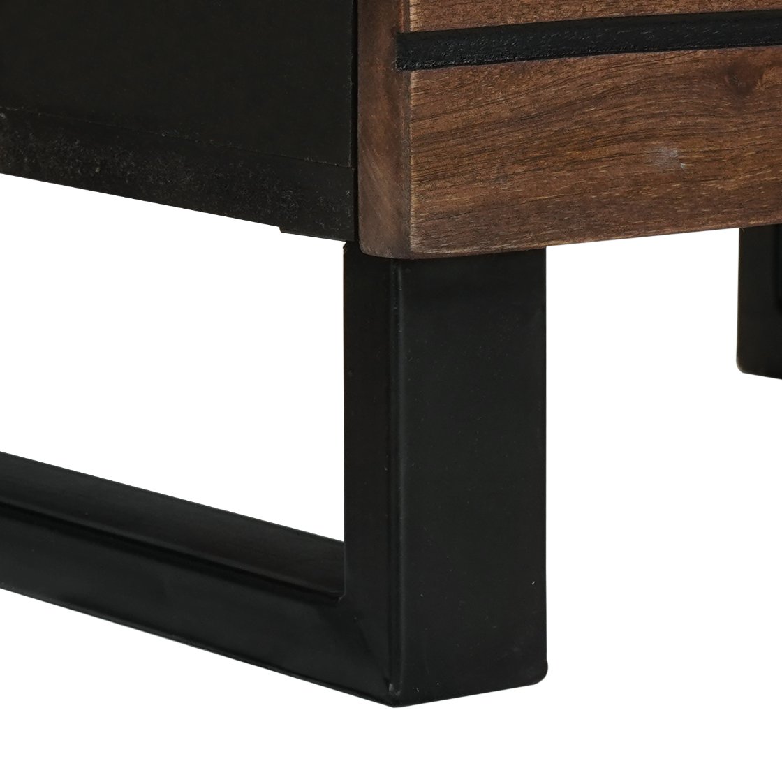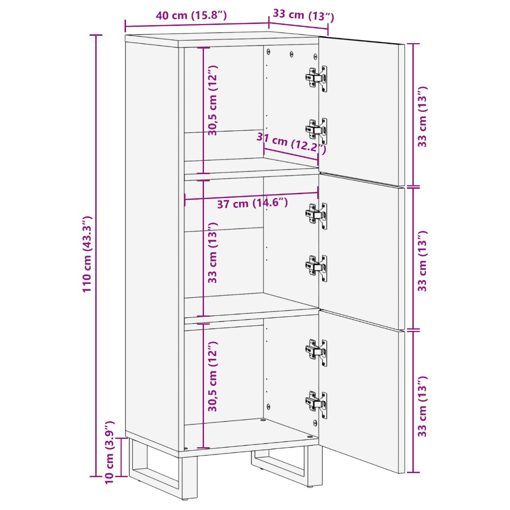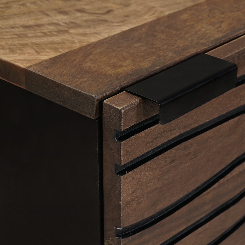 Dieses rustikale Sideboard bringt einen coolen, robusten Touch in jeden Raum. Aus solidem Mangoholz und Holzwerkstoff gemacht, schafft es eine warme, einladende Atmosphäre. Es ist perfekt, um deine Ess- oder Wohnzimmerutensilien zu organisieren, und die rechteckige Form passt sich super verschiedenen Umgebungen an, steigert Funktionalität und Stil. Ideal für alle, die natürliche Materialien und zeitlose Designs mögen, kombiniert dieses Möbelstück Aussehen mit praktischer Nutzung. Hochwertige Materialien Aus solidem Mangoholz und Holzwerkstoff, bietet es die perfekte Mischung aus Schönheit und Stabilität. Das schöne, strukturierte Mangoholz gibt diesem Sideboard einen einzigartigen Charme und macht es zum Blickfang in jedem Raum. Robuste Bauweise Mit starken Eisenbeinen ist diese Einheit darauf ausgelegt, lange zu halten und kann all deine Sachen problemlos tragen. Die langlebigen Materialien sorgen dafür, dass sie auch bei häufigem Gebrauch stabil bleibt. Intelligent funktional Mit stabilen Regalen hält das Sideboard deine Sachen sicher. Die praktischen Regale ermöglichen dir, alles easy zu organisieren, und die Türen mit Scharnieren machen den Zugriff auf deine Dinge total einfach, damit alles ordentlich bleibt. Vielseitige Nutzung Ideal für Innenräume, ergänzt es sowohl Wohnzimmer als auch Esszimmer und bietet praktische Aufbewahrung, wenn du sie brauchst. Das rustikale Design sorgt für eine warme Atmosphäre, perfekt für alle, die einen natürlichen Touch in ihrem Zuhause möchten. Einfache Pflege Pflegeleicht, du musst es nur mit einem trockenen Tuch abwischen. So bleibt das Sideboard lange wie neu.