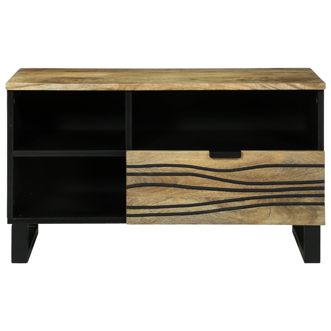 Dieses Regalsystem ist ein echter Blickfang für dein Wohnzimmer. Sein rustikaler Charme kombiniert gutes Aussehen mit praktischer Nutzung und ist aus solidem Mangoholz und Holzwerkstoff gefertigt. Die strukturierte matte Oberfläche sieht nicht nur toll aus, sondern passt auch zu vielen Einrichtungsstilen. Es wurde dafür entworfen, Ordnung zu schaffen und jeden Wohnraum aufzuwerten, indem es Wärme und natürliche Schönheit hinzufügt – egal ob du einen klassischen oder modernen Stil bevorzugst. Erstklassiges Material: Hergestellt aus solidem Mangoholz und Holzwerkstoff, ist dieses Möbelstück stark und stylisch. Die natürliche Maserung des Holzes gibt ihm Charakter und seine Haltbarkeit sorgt dafür, dass es lange hält – perfekt für Aufbewahrungslösungen. Praktischer Stauraum: Das Aufbewahrungssystem bietet dir jede Menge Platz mit Regalen und Schubladen, sodass du alles von Medien bis zu Büchern ordentlich sortieren kannst. Jede Schublade gleitet leicht heraus, was den Zugriff auf deine Sachen einfach macht. Solide Bauweise: Mit Eisenbeinen ist dieses Aufbewahrungssystem stabil und hält stand. Das Eisen bringt eine starke Basis und verstärkt den rustikalen Look, sodass es über die Jahre hinweg stabil und ansprechend bleibt. Flexibles Design: Die rechteckige Form passt super in offene und gemütliche Räume. Dieses Design ist ideal für alle, die eine Mischung aus klassischem Stil und moderner Nützlichkeit suchen – perfekt für jede Umgebung. Einfach zu pflegen: Die Reinigung ist kinderleicht, einfach mit einem trockenen Tuch abwischen. So sieht es über die Jahre hinweg gut aus, ohne dass du viel Aufwand hast.