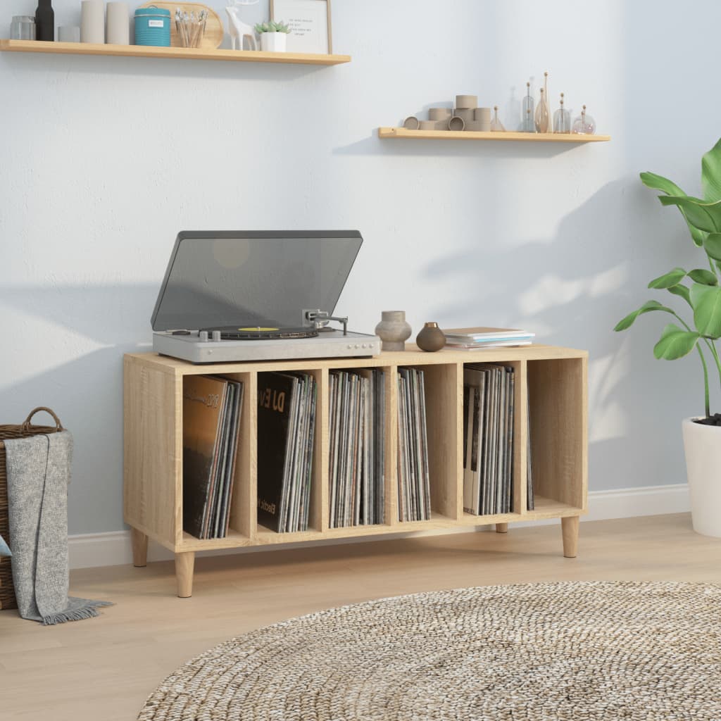 In diesem praktischen und klassischen Plattenschrank kannst du deine Schallplatten aufbewahren und zur Schau stellen. Langlebiges Material: Holzwerkstoff ist ein Material von außergewöhnlicher Qualität mit glatter Oberfläche, das sich durch Festigkeit, Stabilität und Feuchtigkeitsbeständigkeit auszeichnet.Viel Stauraum: Der geräumige Schallplattenschrank bietet reichlich Stauraum für LP-Schallplatten, um deine Musiksammlung ordentlich aufzubewahren.Stabile Oberplatte: Die robuste Oberplatte des Vinylschrankes bietet den idealen Platz für deinen Plattenspieler oder andere elektronische Geräte.Mehrere Funktionen: Dieser Plattenschrank kann auch als TV-Schrank oder Beistellschrank im Wohnzimmer oder als Aktenschrank im Büro und Arbeitszimmer verwendet werden.Holzbeine: Die Holzbeine verleihen dem Schallplattenschrank eine natürliche und angenehme Optik und sorgen gleichzeitig für Stabilität.