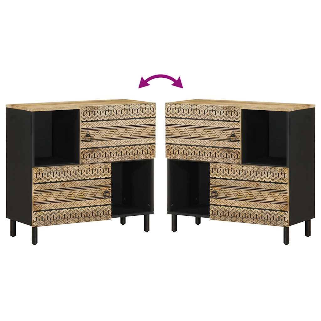 Dieses klassische Sideboard stellt sowohl eine dekorative als auch eine praktische Bereicherung für Ihr Zuhause dar. Robustes und stabiles Material: Massives Mangoholz ist ein robustes, tropisches Hartholz, das wegen seiner außergewöhnlichen Haltbarkeit und Festigkeit für den Möbelbau sehr bevorzugt wird. Die optisch ansprechende Holzmaserung macht jedes Möbelstück zu einem Unikat.Reichlich Stauraum: Dieser Schrank bietet reichlich Platz, um deine Zeitschriften, Bücher, DVDs, Dekoartikel und andere kleine Gegenstände gut organisiert und in Reichweite aufzubewahren.Stabile und robuste Tischplatte: Die stabile Tischplatte bieten den idealen Platz für Getränke oder andere Sachen, die du griffbereit haben möchtest.Stabil und haltbar: Mit einem Eisengestell versehen, verleiht das Sideboard deinem Interieur eine industrielle Note und bietet auch außergewöhnliche Haltbarkeit, Stabilität und Korrosionsbeständigkeit. Gut zu wissen:Jedes Stück ist ein Unikat, das in Farbe und Maserung variiert. Die Lieferung erfolgt in zufälliger Reihenfolge, wodurch die Exklusivität und Individualität deines Produkts gewährleistet wird. Achtung:Um ein Umkippen zu vermeiden, sollte dieses Produkt mit der mitgelieferten Wandhalterung gesichert werden.