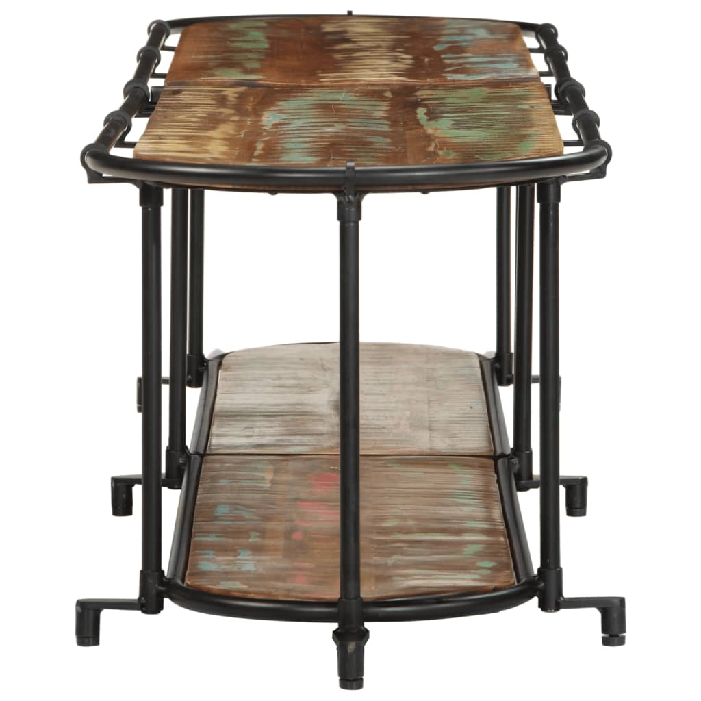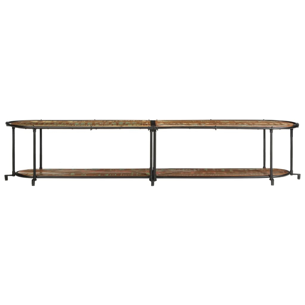 Dieser TV-Schrank bietet reichlich Stauraum und ist eine praktische sowie auffällige Ergänzung zu deinem Wohn- oder Schlafzimmer. Robust und stabil: Massives Altholz besteht aus wiederverwendeten Holzarten wie Teakholz, Mangoholz, Kiefernholz und Buche. Diese Materialien werden aus alten Gebäuden wie Fabriken, Schuppen und Booten recycelt. Gebrauchsspuren und die sichtbare Maserung erzählen die Geschichte jedes einzelnen Stücks und verleihen jedem Möbelstück einen einzigartigen Look.Stabil und haltbar: Mit einem Eisengestell versehen, verleiht das TV-Regal deinem Interieur eine industrielle Note und bietet auch außergewöhnliche Haltbarkeit und Stabilität.Stabile und robuste Oberplatte: Die robuste Oberplatte bietet den idealen Platz für deinen Fernseher und Stereoanlagen oder einige Dekoartikel wie Vasen oder Topfpflanzen.Reichlich Stauraum: Dieser TV-Tisch bietet auch reichlich Stauraum, um deine Zeitschriften, Bücher, DVDs und Multimedia-Geräte ordentlich und griffbereit aufzubewahren. Gut zu wissen:Jedes Stück ist ein Unikat, das in Farbe und Maserung variiert. Die Lieferung erfolgt in zufälliger Reihenfolge, wodurch die Exklusivität und Individualität deines Produkts gewährleistet wird.