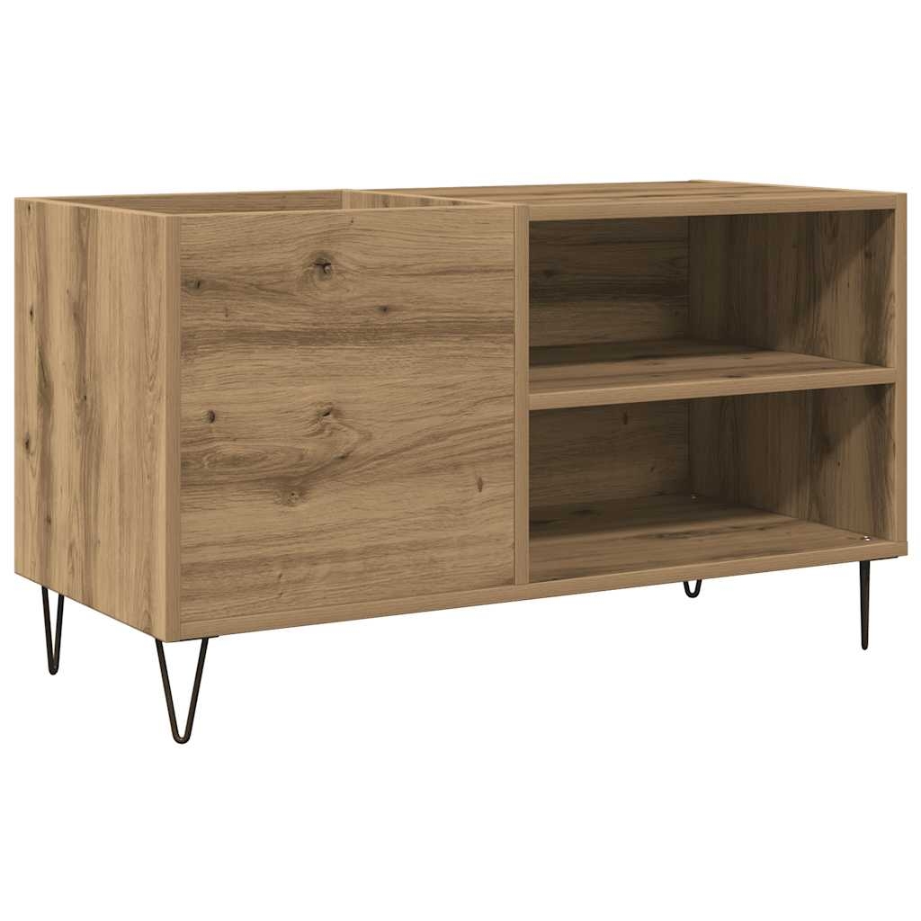 In diesem praktischen und klassischen Plattenschrank kannst du deine Schallplatten aufbewahren und zur Schau stellen. Starkes und langlebiges Material: Holzwerkstoff ist ein langlebiges und robustes Material mit einer glatten Oberfläche, das gegen Feuchtigkeit, Verformung und Rissbildung beständig ist, wodurch es eine zuverlässigen Wahl für die Herstellung von Möbeln ist.Viel Stauraum: Der geräumige Schallplattenschrank bietet reichlich Stauraum für LP-Schallplatten, um deine Musiksammlung ordentlich aufzubewahren.Stabile Oberplatte: Die robuste Oberplatte des Vinylschrankes bietet den idealen Platz für deinen Plattenspieler oder andere elektronische Geräte.Eisenbeine: Die Eisenbeine verleihen deiner Einrichtung eine industrielle Note und sorgen gleichzeitig für Stabilität.