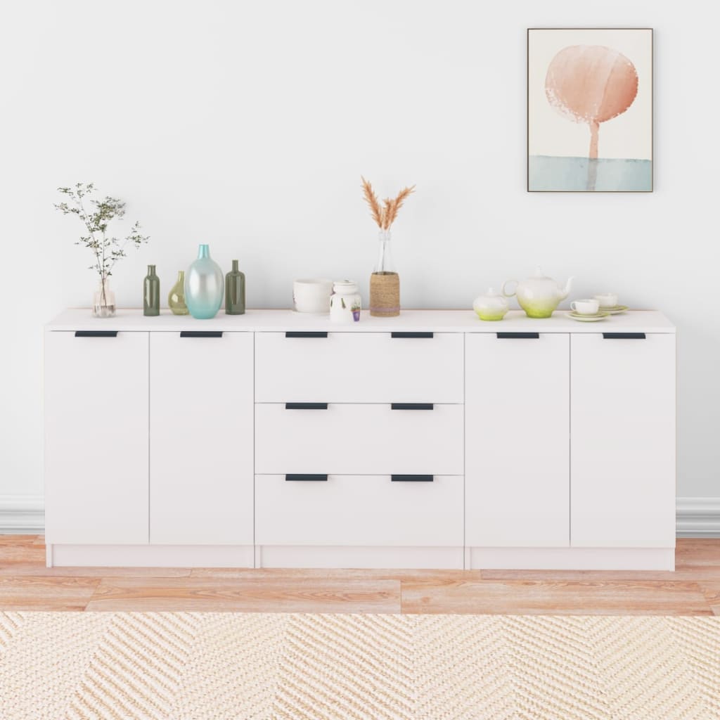 Mit ihrem minimalistischen Charme erfüllen diese Sideboards vielfältige Anforderungen und sind eine ideale Bereicherung für dein Zuhause. Pflegeleicht: Aus Holzwerkstoff gefertigt, lassen sich die Kommoden ganz einfach reinigen. Holzwerkstoff ist ein Material mit glatter Oberfläche und von außergewöhnlicher Qualität. Es zeichnet sich durch Festigkeit, Stabilität und Feuchtigkeitsbeständigkeit aus.Reichlich Stauraum: Die Sideboards bieten reichlich Platz, um verschiedene Sachen ordentlich aufzubewahren.Multifunktional: Die robuste Oberplatte eignet sich ideal, um Dekoartikel, Topfpflanzen oder Bilderrahmen zur Schau zu stellen. Sie können auch als Konsolenschränke, Beistellschränke usw. verwendet werden. Warnung:Um das Umkippen zu verhindern, müssen diese Möbel mit der mitgelieferten Wandhalterung gesichert werden.