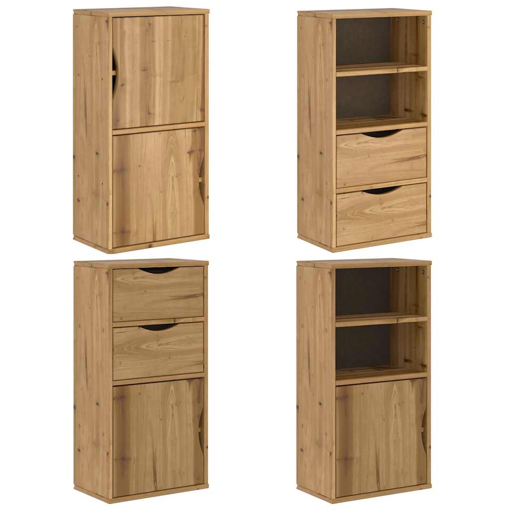 Verleihen Sie Ihrem Zimmer einen klassischen Charme mit diesen Beistellschränken aus Holz! Robust und stabil: Kiefernholz ist für seine Stärke und Haltbarkeit bekannt. Seine gerade Maserung und die charakteristischen Aststellen tragen zu seinem rustikalen Charme bei.Viel Stauraum: Der Schrank bietet reichlich Stauraum, um verschiedene Alltagssachen ordentlich und griffbereit aufzubewahren.Stabile und robuste Oberplatte: Die robuste Oberplatte bietet den idealen Platz für kleinere Gegenstände oder einige Dekoartikel wie Vasen oder Topfpflanzen.Modulares Design: Diese Schränke bieten modulare Stapel- und vielseitige Anordnungsmöglichkeiten, darunter vertikale Türme, L-förmige Anordnungen und horizontale Reihen, sodass du sie an deine Bedürfnisse anpassen kannst. Achtung:Um ein Umkippen zu vermeiden, sollte dieses Produkt mit der mitgelieferten Wandhalterung gesichert werden.Gut zu wissen:Diese Aufbewahrungsmöbel ergänzen perfekt die anderen Möbel der ODDA-Serie, sodass du sie entweder nahtlos an den Stil anpassen oder für größere Aufbewahrungslösungen kombinieren kannst.