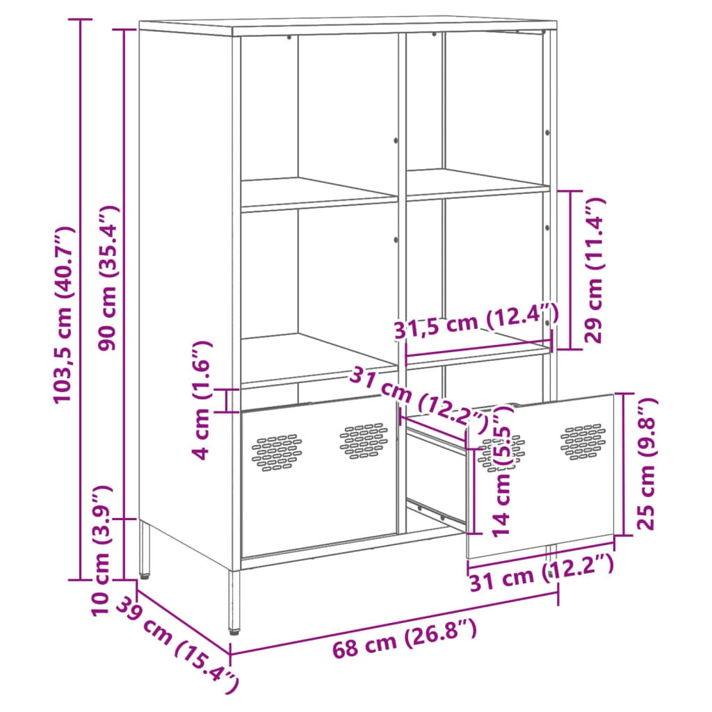Dieses klassische Highboard ist sowohl eine dekorative als auch eine praktische Ergänzung zu deinem Zuhause oder Büro. Robuste und stabile Struktur: Kaltgewalzter Stahl hat eine glattere Oberfläche, bietet höhere Festigkeit und gewährleistet eine bessere Präzisionsbearbeitung. Die Metallfüße verleihen der Kommode eine angenehme Optik und sorgen gleichzeitig für Stabilität.Viel Stauraum: Der Schrank mit Schublade bietet viel Platz, um verschiedene Alltagssachen gut organisiert und in Reichweite aufzubewahren.Pflegeleicht: Dank seiner glatten Oberfläche lässt sich der Wandschrank mit einem feuchten Tuch leicht reinigen und erfordert wenig Pflege.Vielseitig einsetzbar: Dieses Highboard lässt sich je nach Bedarf als Bücherschrank oder Standregal in deinem Wohnzimmer, Schlafzimmer oder Büro verwenden. Achtung:Um ein Umkippen zu vermeiden, sollte dieses Produkt mit der mitgelieferten Wandhalterung gesichert werden.
