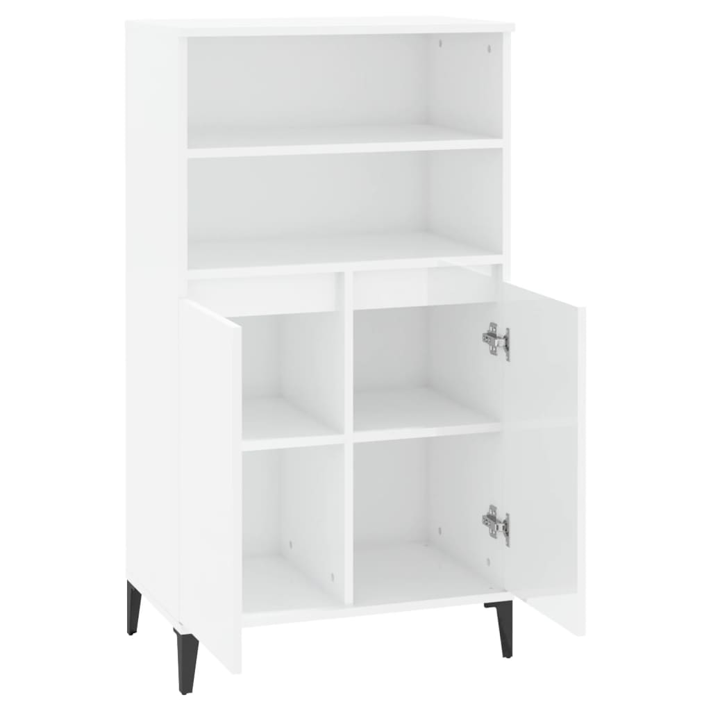 Dieses klassische Highboard soll eine dekorative und praktische Ergänzung für dein Zuhause sein. Langlebiges Material: Dieses Highboard ist aus Holzwerkstoff gefertigt. Holzwerkstoff ist ein Material von außergewöhnlicher Qualität mit glatter Oberfläche, das sich durch Festigkeit, Stabilität und Feuchtigkeitsbeständigkeit auszeichnet.Stabile Metallfüße: Die Metallfüße verleihen dem Beistellschrank eine industrielle und angenehme Note und sorgen gleichzeitig für Stabilität.Viel Stauraum: Das Sideboard verfügt über 2 offene Ablagen und 4 Fächer und bietet dadurch reichlich Stauraum, um verschiedene Alltagssachen gut organisiert und griffbereit aufzubewahren.Praktisches Design: Dieser Lagerschrank verfügt über Türen, die deine Sachen vor Staub und Schmutz schützen.Stabile Oberplatte: Du kannst auch deine Lieblingsfotos, Dekoartikel oder Topfpflanzen auf dieses Sideboard stellen, um deinen Wohnraum zu bereichern. Achtung:Um das Umkippen zu verhindern, muss dieses Produkt mit der mitgelieferten Wandhalterung gesichert werden. Hinweis:Jedes Produkt wird mit einer Montageanleitung in der Verpackung für eine einfache Montage geliefert.
