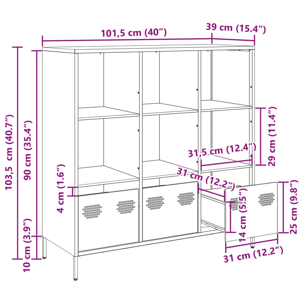 Dieses klassische Highboard ist sowohl eine dekorative als auch eine praktische Ergänzung zu deinem Zuhause oder Büro. Robuste und stabile Struktur: Kaltgewalzter Stahl hat eine glattere Oberfläche, bietet höhere Festigkeit und gewährleistet eine bessere Präzisionsbearbeitung. Die Metallfüße verleihen der Kommode eine angenehme Optik und sorgen gleichzeitig für Stabilität.Viel Stauraum: Der Schrank mit Schublade bietet viel Platz, um verschiedene Alltagssachen gut organisiert und in Reichweite aufzubewahren.Pflegeleicht: Dank seiner glatten Oberfläche lässt sich der Wandschrank mit einem feuchten Tuch leicht reinigen und erfordert wenig Pflege.Vielseitig einsetzbar: Dieses Highboard lässt sich je nach Bedarf als Bücherschrank oder Standregal in deinem Wohnzimmer, Schlafzimmer oder Büro verwenden. Achtung:Um ein Umkippen zu vermeiden, sollte dieses Produkt mit der mitgelieferten Wandhalterung gesichert werden.