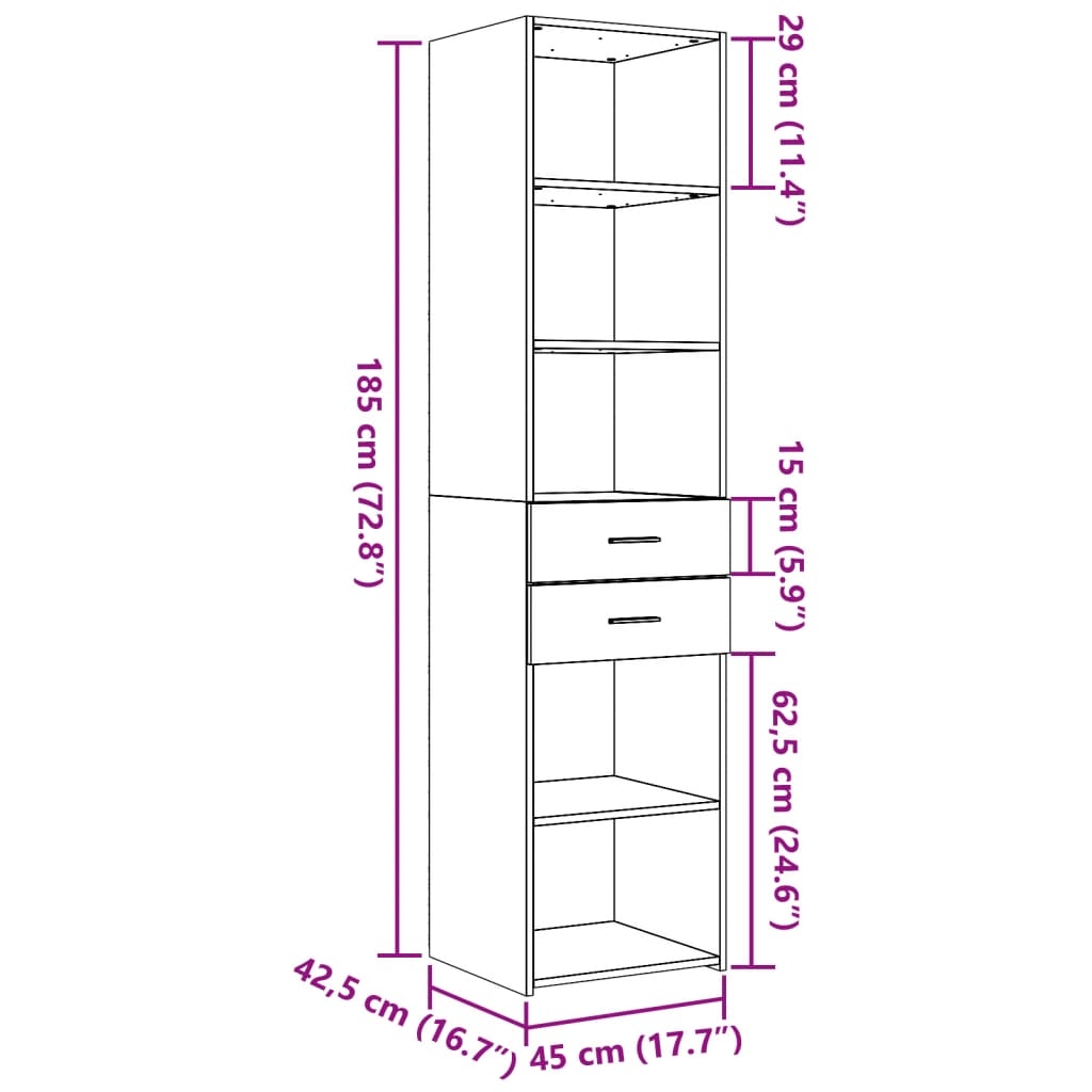 - Abmessungen: 45 x 42,5 x 185 cm (B x T x H)
