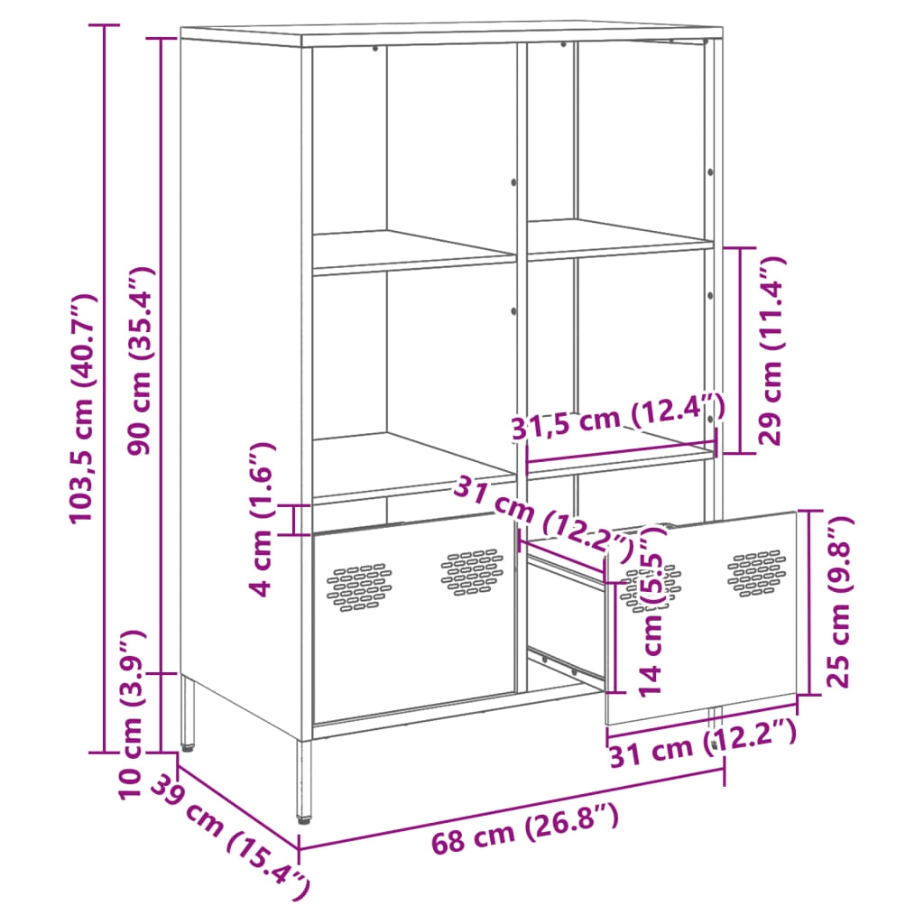 Dieses klassische Highboard ist sowohl eine dekorative als auch eine praktische Ergänzung zu deinem Zuhause oder Büro. Robuste und stabile Struktur: Kaltgewalzter Stahl hat eine glattere Oberfläche, bietet höhere Festigkeit und gewährleistet eine bessere Präzisionsbearbeitung. Die Metallfüße verleihen der Kommode eine angenehme Optik und sorgen gleichzeitig für Stabilität.Viel Stauraum: Der Schrank mit Schublade bietet viel Platz, um verschiedene Alltagssachen gut organisiert und in Reichweite aufzubewahren.Pflegeleicht: Dank seiner glatten Oberfläche lässt sich der Wandschrank mit einem feuchten Tuch leicht reinigen und erfordert wenig Pflege.Vielseitig einsetzbar: Dieses Highboard lässt sich je nach Bedarf als Bücherschrank oder Standregal in deinem Wohnzimmer, Schlafzimmer oder Büro verwenden. Achtung:Um ein Umkippen zu vermeiden, sollte dieses Produkt mit der mitgelieferten Wandhalterung gesichert werden.