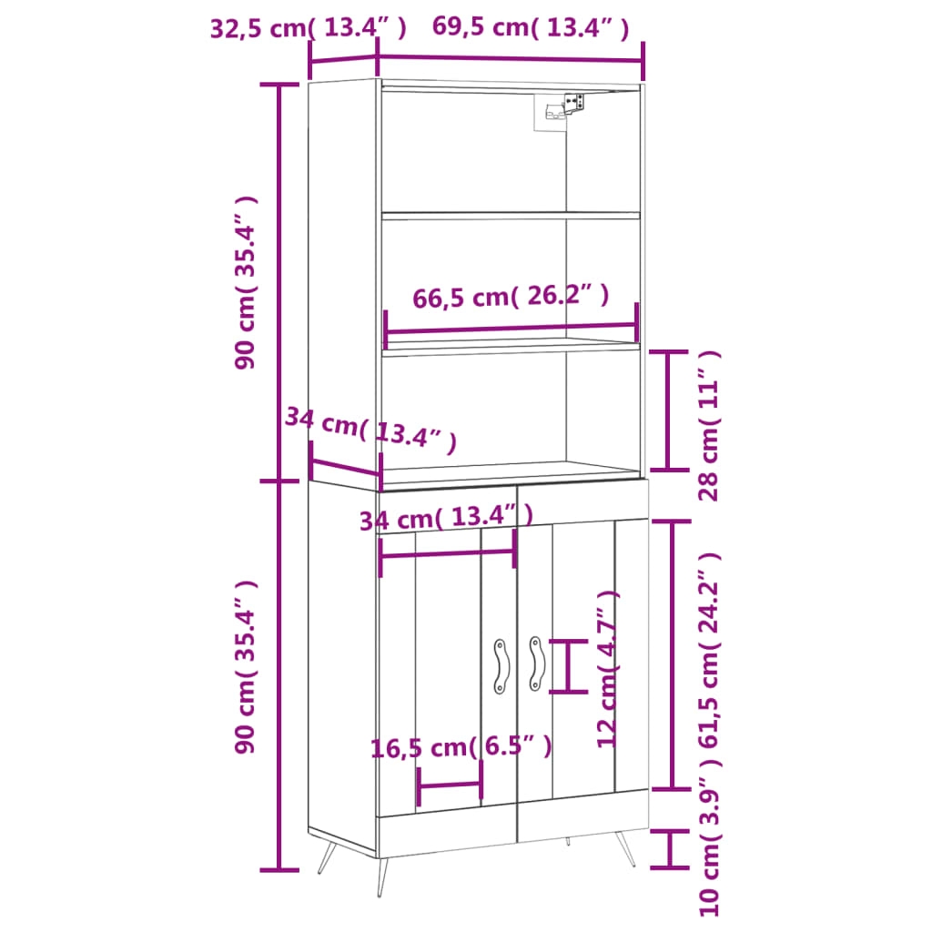 - Abmessungen des Highboard-Aufsatzes: 69,5 x 32,5 x 90 cm (B x T x H)