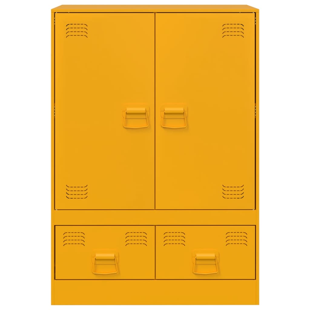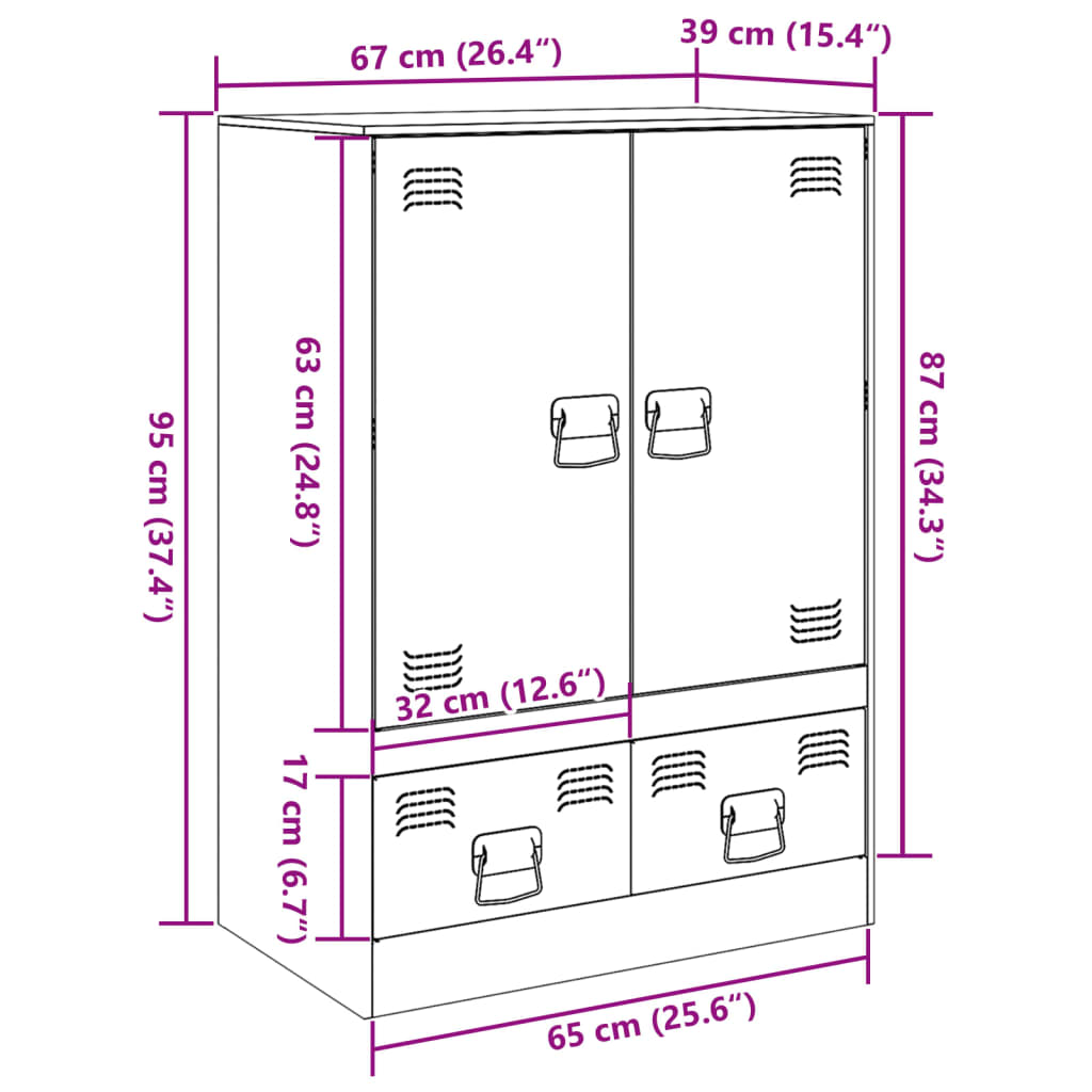 Auf der Suche nach einem stilvollen Highboard? Dieser Schrank verleiht deiner Einrichtung einen eleganten Charme! Stabiles Material: Der Rahmen des Sideboards besteht aus kaltgewalztem Stahl. Kaltgewalzter Stahl ist eine Art kohlenstoffarmer Stahl, der im „Kaltwalzverfahren“ hergestellt und bei nahezu normalen Raumtemperaturen verarbeitet wird. Kaltgewalzter Stahl besitzt eine glattere Oberfläche, eine höhere Festigkeit und lässt sich präziser verarbeiten.Reichlich Stauraum: Dieser Schrank bietet praktischen Stauraum für Zeitschriften, Bücher, Bürobedarf, Dokumente und andere Gegenstände, die hier gut geordnet und in Reichweite aufbewahrt werden können.Pflegeleicht: Der Schrank ist mit einem feuchten Tuch leicht zu reinigen und erfordert wenig Pflege.Praktischer Griff: Das Sideboard ist mit 4 Griffen ausgestattet, die das Öffnen und Schließen des Schranks erleichtern und gleichzeitig zu seiner ansprechenden Optik beitragen. Achtung:Um ein Umkippen zu verhindern, muss dieses Produkt mit einer Wandhalterung (nicht im Lieferumfang enthalten) gesichert werden.