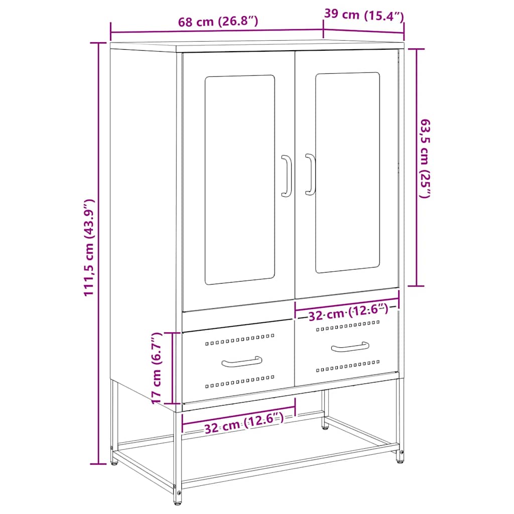 Dieses Highboard bietet sowohl dekorativen Reiz als auch praktischen Stauraum und ist damit eine perfekte Ergänzung für dein Zuhause. Robuster und stabiler Werkstoff: Kaltgewalzter Stahl ist eine kohlenstoffarme Stahlsorte, die im Kaltwalzverfahren hergestellt und bei nahezu normalen Raumtemperaturen verarbeitet wird. Kaltgewalzter Stahl hat eine glattere Oberfläche, eine höhere Festigkeit und eine höhere Präzision.Reichlich Stauraum: Der Schrank bietet reichlich Stauraum, um Essgeschirr und andere Haushaltssachen ordentlich und griffbereit aufzubewahren.Praktische Tür: Dank der Tür lassen sich deine Sachen ordentlich, geschützt und außer Sicht aufbewahren.Flexibler Türeinbau: Die Tür des Fachs kann je nach deinen persönlichen Gewohnheiten und Bequemlichkeit links oder rechts angebracht werden.Praktische Griffe: Das Sideboard wird mit Griffen geliefert, die einen bequemen Griff bieten und Ihnen helfen, den Schrank leicht zu öffnen und zu schließen und gleichzeitig zusätzliche Schönheit zu verleihen. Achtung:Um ein Umkippen zu vermeiden, sollte dieses Produkt mit der mitgelieferten Wandhalterung gesichert werden.