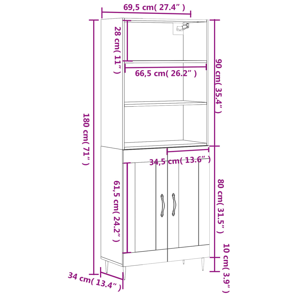 - Abmessungen des Highboard-Aufsatzes: 69,5 x 32,5 x 90 cm (B x T x H)