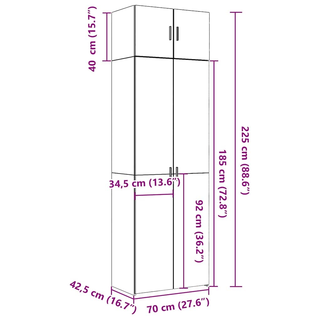 - Gesamtabmessungen: 70 x 42,5 x 225 cm (B x T x H)