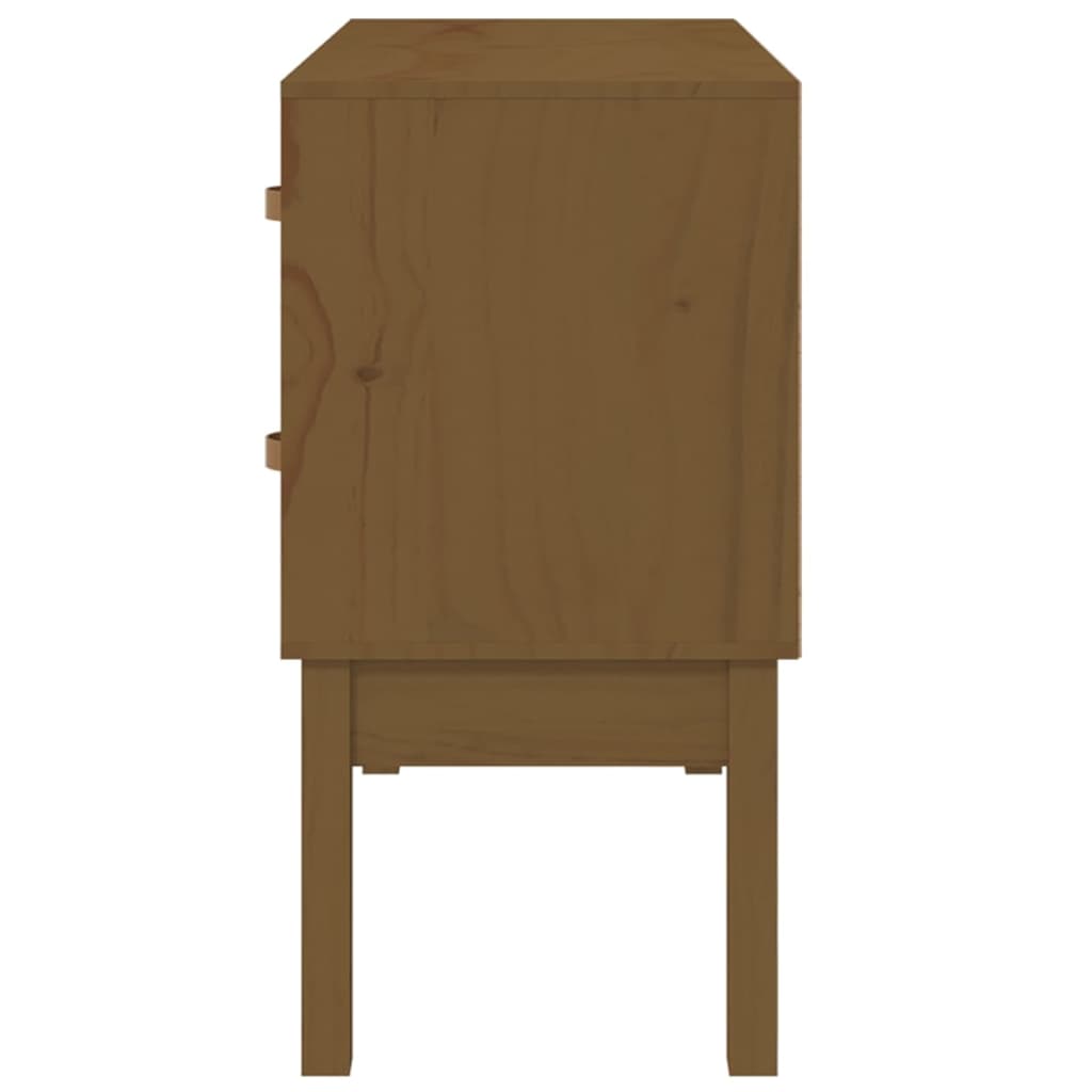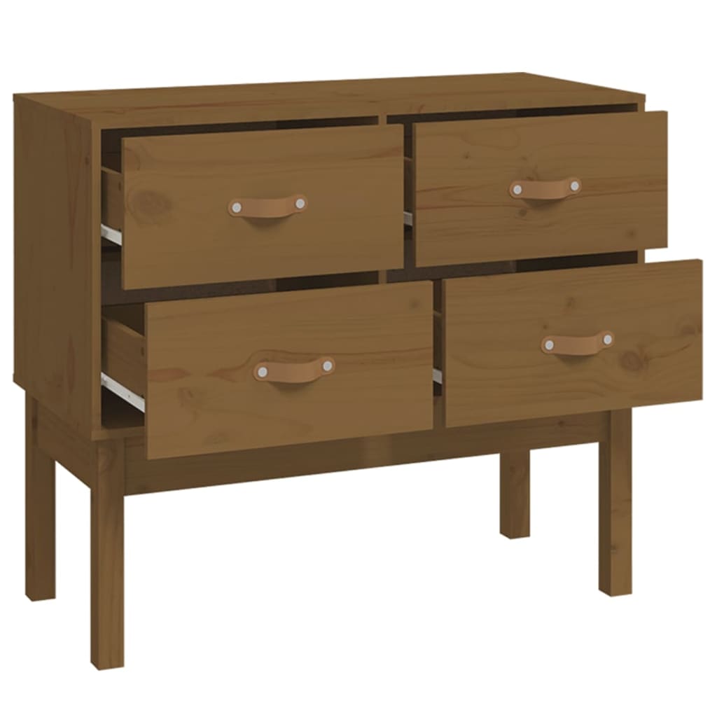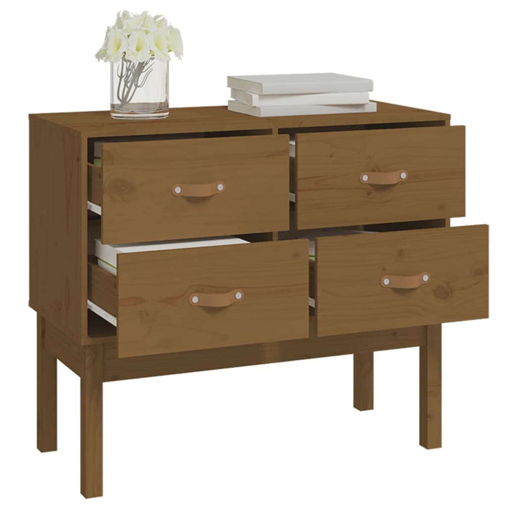 Dieser Konsolenschrank aus Holz ist eine perfekte Ergänzung für Ihr Schlafzimmer, Wohnzimmer oder Büro und hinterlässt einen bleibenden Eindruck! Massives Kiefernholz: Dieser Schrank ist aus Kiefern-Massivholz gefertigt. Massives Kiefernholz ist ein wunderschönes Naturmaterial. Kiefernholz weist eine gerade Maserung auf und die Aststellen verleihen dem Material seine charakteristische, rustikale Optik.Viel Stauraum: Der Beistellschrank verfügt über 4 Schubladen und bietet dadurch reichlich Stauraum, um verschiedene wichtige Alltagssachen übersichtlich und griffbereit aufzubewahren.Präsentation: Die Tischplatte dieses Flurschranks eignet sich perfekt, um Dekoartikel, Bilderrahmen und Topfpflanzen zur Schau zu stellen. Achtung:Um das Umkippen zu verhindern, muss dieses Produkt mit der mitgelieferten Wandhalterung gesichert werden. Hinweis:Jedes Produkt wird mit einer Montageanleitung in der Verpackung für eine einfache Montage geliefert.