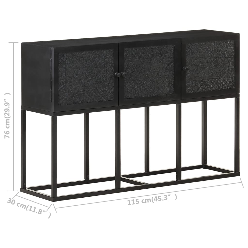 Wenn Sie einen Hauch von rustikalem und industriellem Charme für Ihr Interieur suchen, ist dieses Sideboard aus Holz genau das Richtige für Sie. Der Beistellschrank besteht aus massivem Mangoholz, einem tropischen Hartholz, das belastbar und verschleißfest ist; somit ist das Sideboard stabil und langlebig. Der pulverbeschichtete Stahlrahmen sorgt für zusätzliche Stabilität. Dieser Schrank verfügt über 3 Türen, die ausreichend Stauraum bieten. Darüber hinaus eignet sich die robuste Holzplatte ideal für die Präsentation von Dekorationsgegenständen wie Fotorahmen, Topfpflanzen, Vasen usw. Wichtiger Hinweis: Farbe und Maserung variieren von Stück zu Stück, so dass jedes Möbelstück einzigartig ist. Die Lieferung erfolgt nach dem Zufallsprinzip.