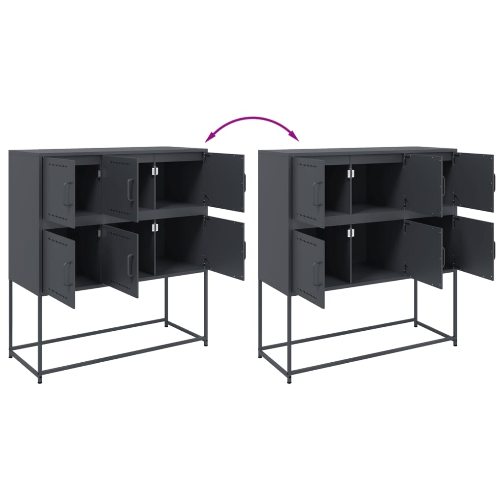 Auf der Suche nach einem stilvollen Sideboard? Dieses gut gestaltete Sideboard verleiht deiner Einrichtung eine elegante Note! Langlebiges Material: Stahl ist ein außergewöhnlich hartes und starkes Material. Er bietet Robustheit und Stabilität. Kaltgewalztes Stahlblech weist eine glatte Oberfläche auf und lässt sich präzise verarbeiten.Reichlich Stauraum: Dieser Schrank bietet praktischen Stauraum für Zeitschriften, Bücher, Bürobedarf, Dokumente und andere Gegenstände, die hier gut geordnet und in Reichweite aufbewahrt werden können.Pflegeleicht: Der Schrank ist mit einem feuchten Tuch leicht zu reinigen und erfordert wenig Pflege. Achtung:Um ein Umkippen zu verhindern, muss dieses Produkt mit einer Wandhalterung (nicht im Lieferumfang enthalten) gesichert werden.